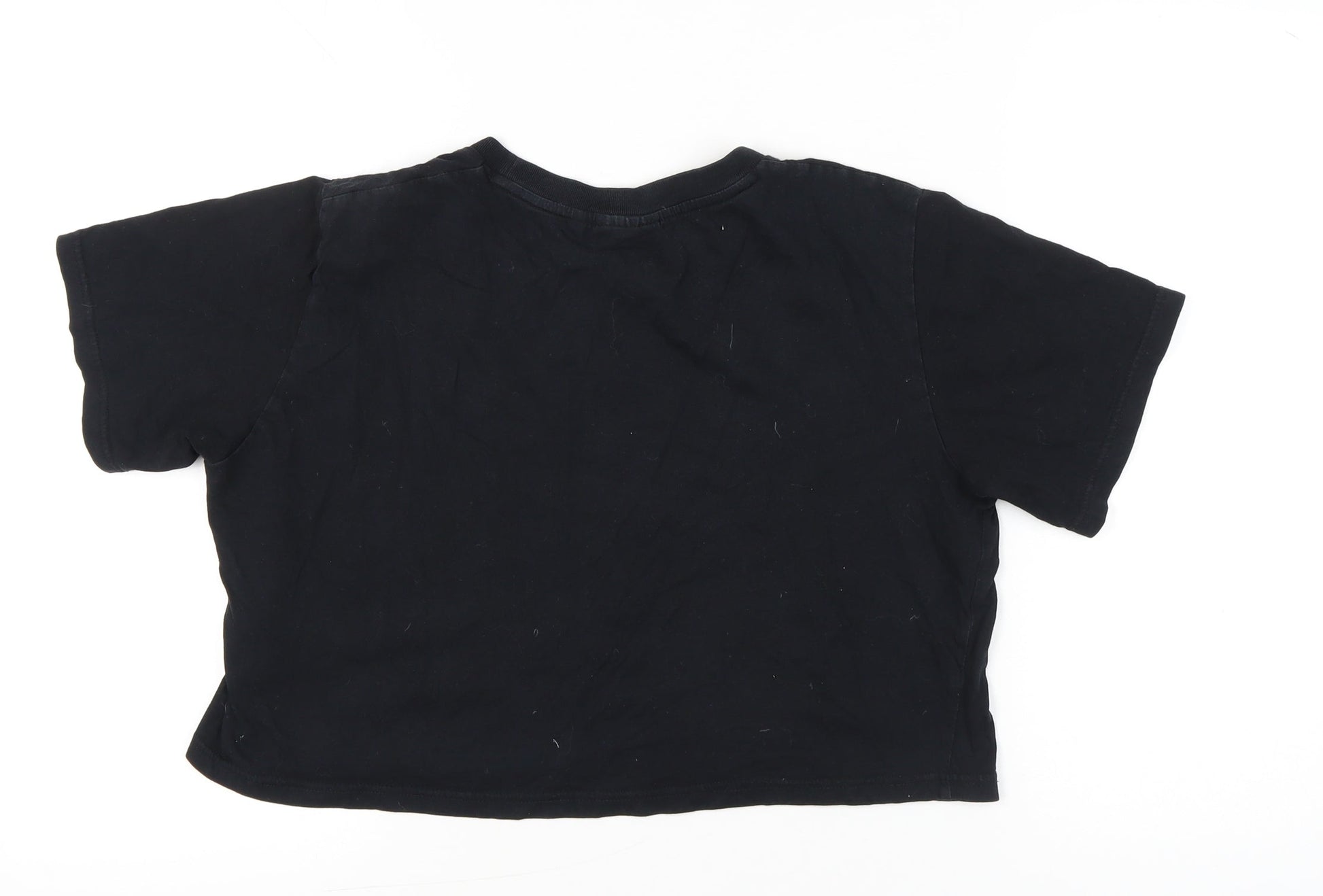 Fila Womens Black Cropped T-Shirt Crew Neck Size M Casual