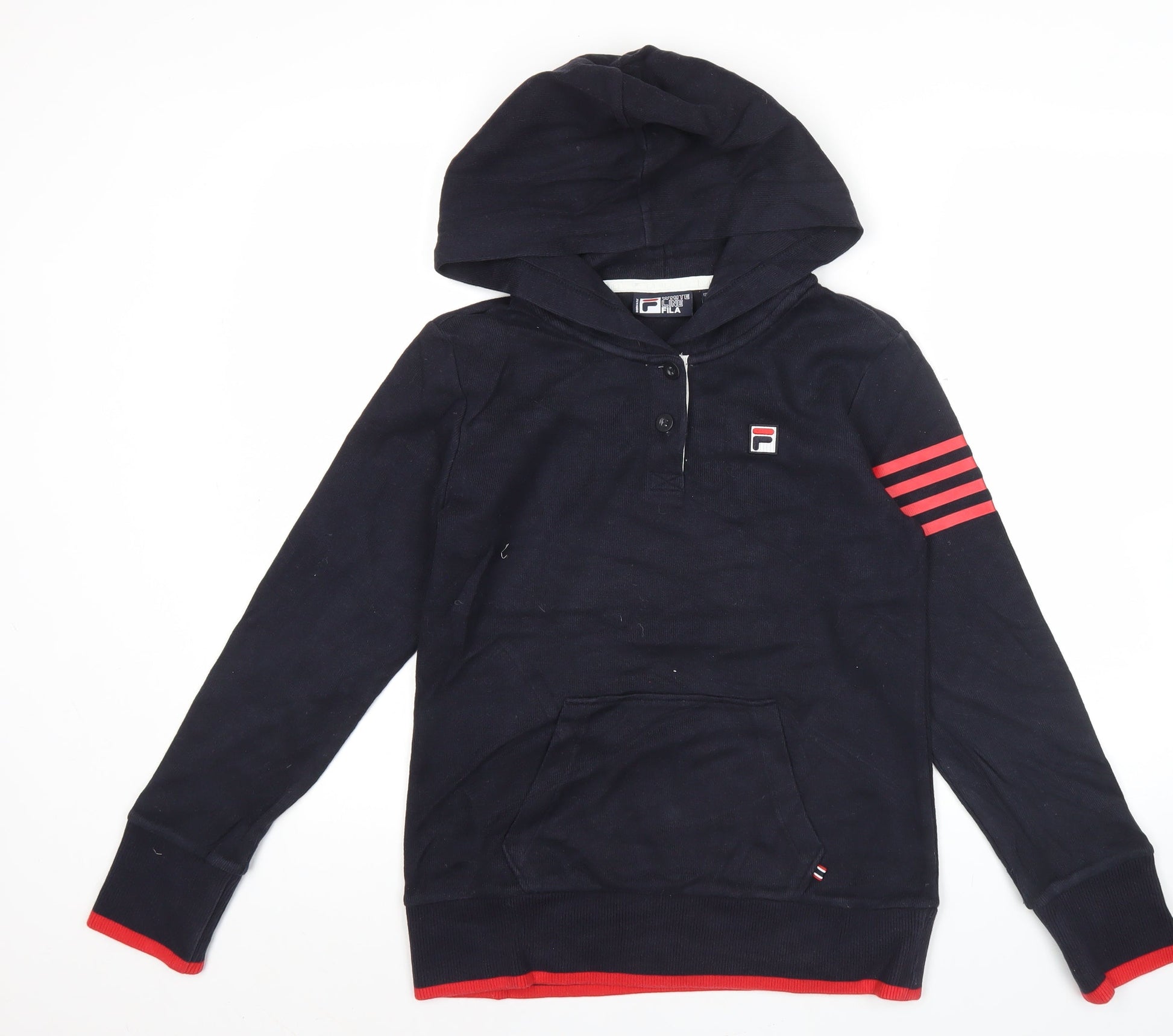 Fila Womens Black Henley Hoodie Size 12 Hooded Sweatshirt