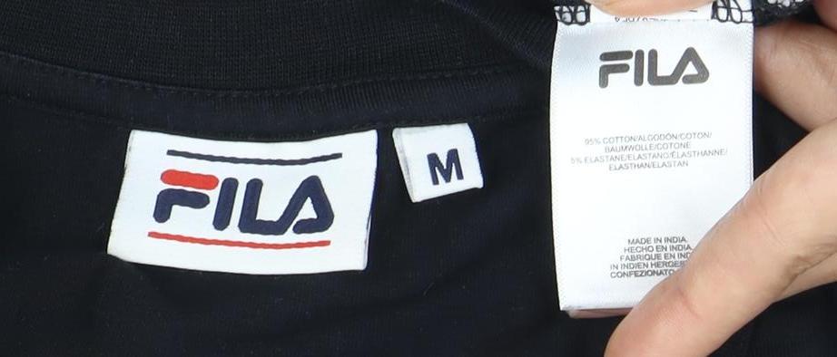 FILA Women's Black/White Cropped T-Shirt, Size M, Casual