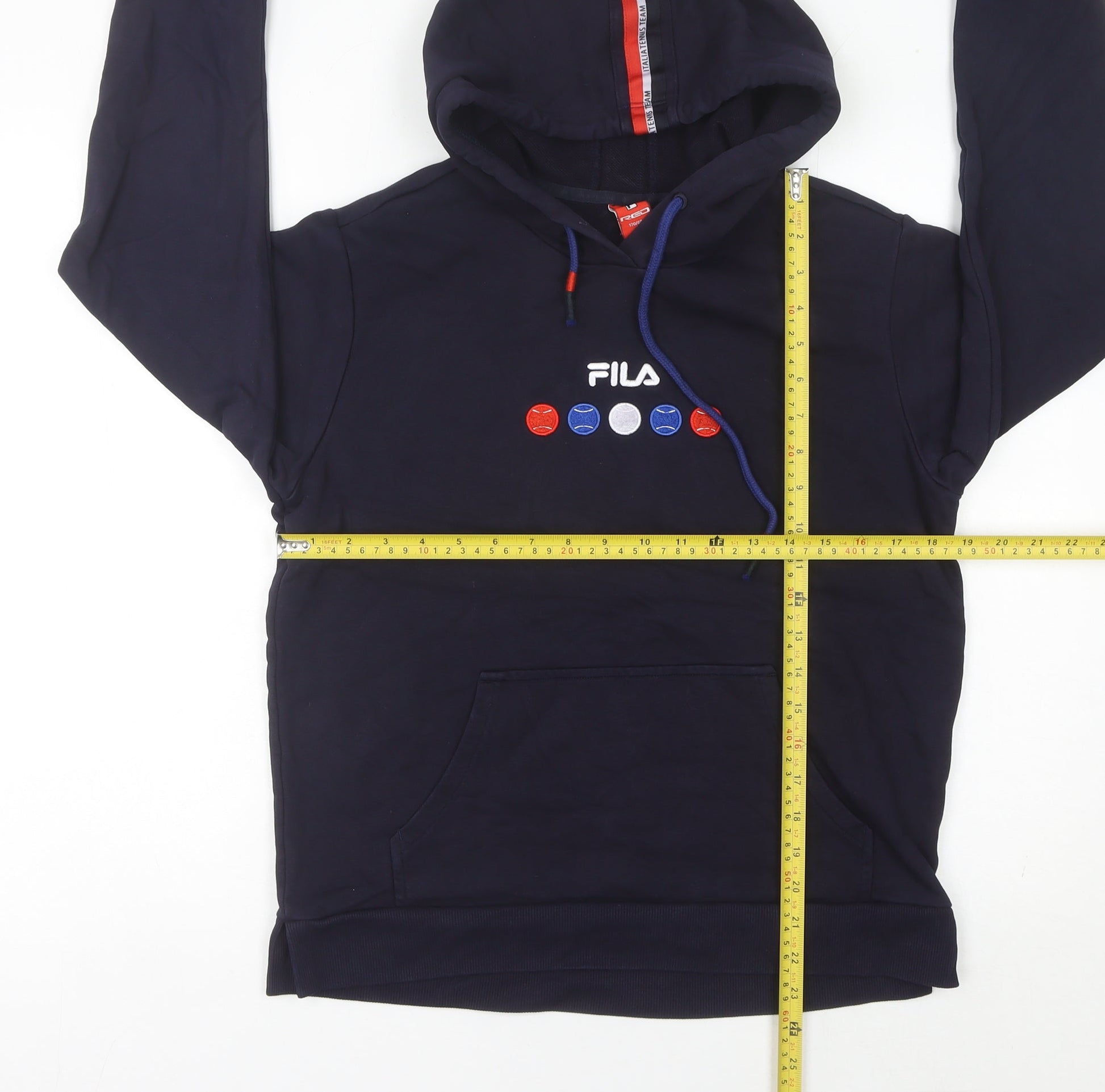Fila Womens Navy Blue Pullover Hoodie Size 10 UK Long Sleeve Logo