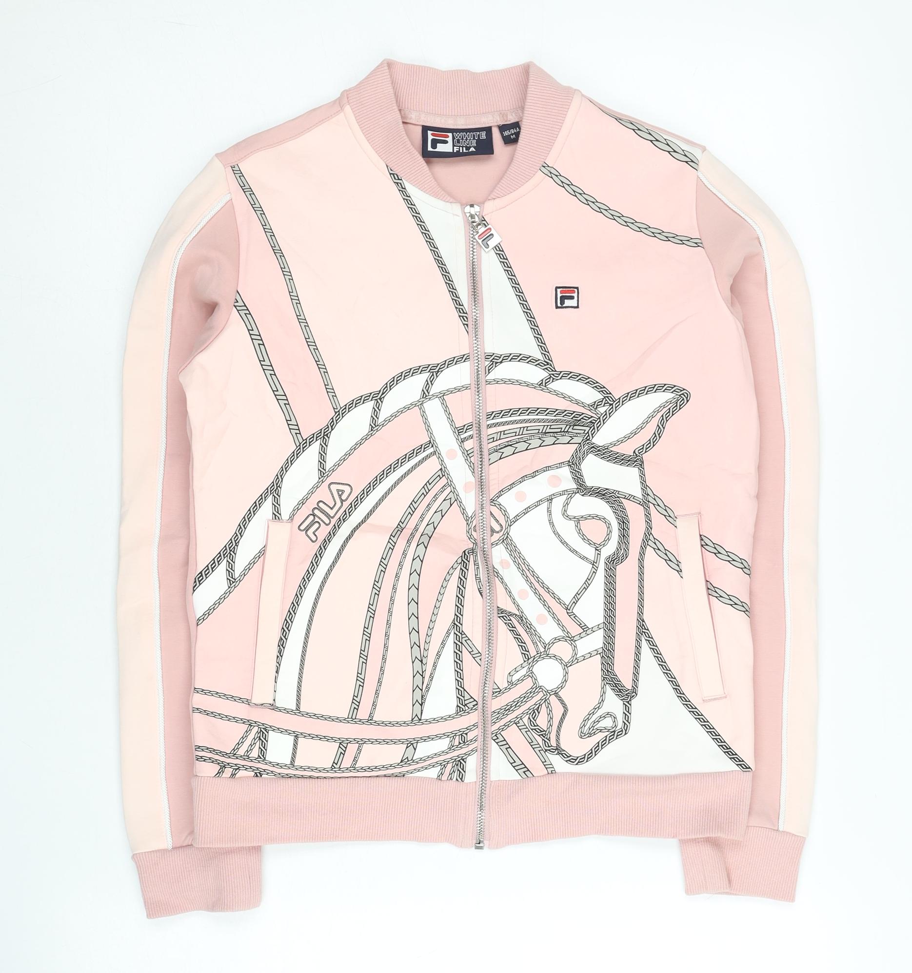 Fila Womens Pink Track Jacket Size 8 Graphic Print Full Zip