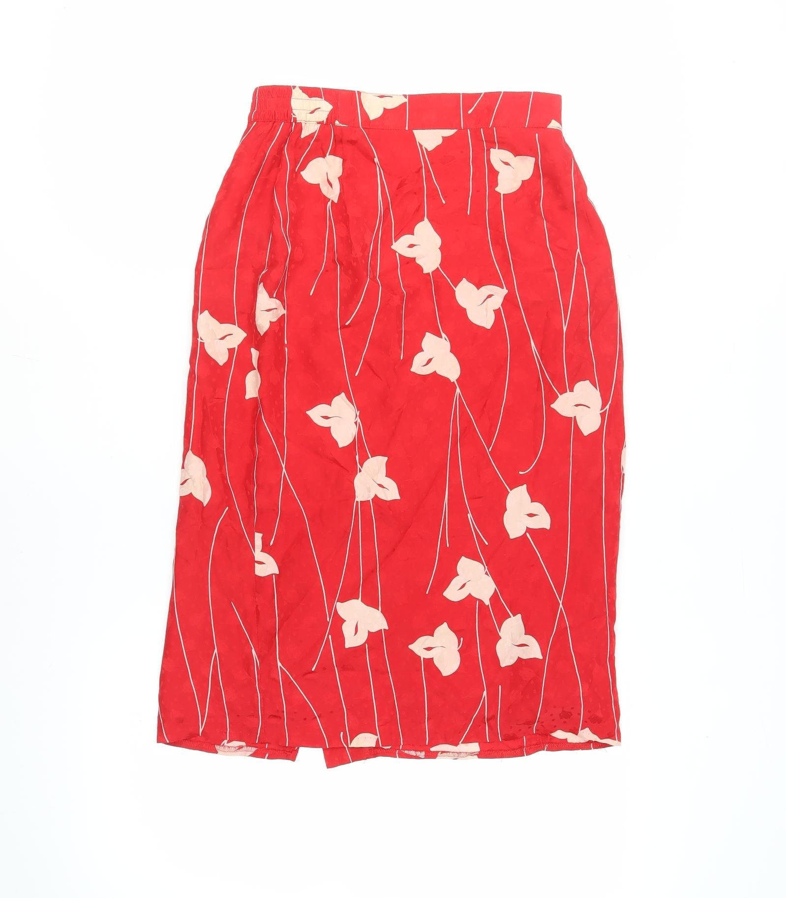 Fink Women's Red Floral Silk Pencil Skirt Size 10