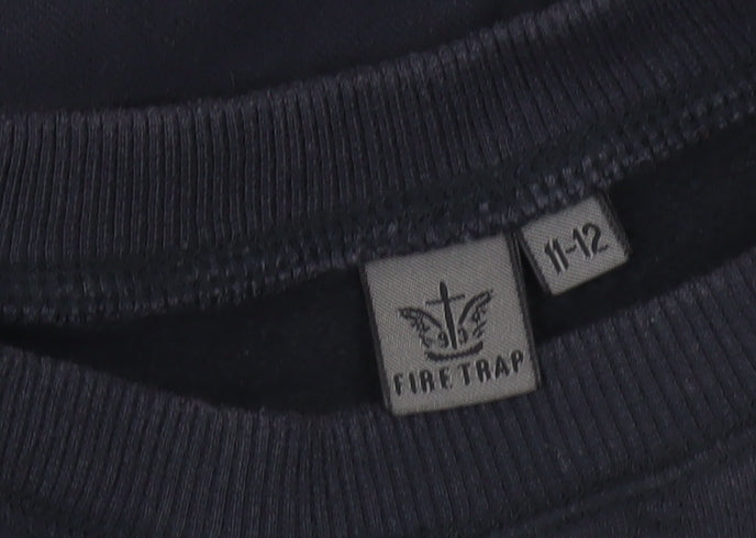 Firetrap Boys Black 11-12 Years Pullover Fleece Sweatshirt
