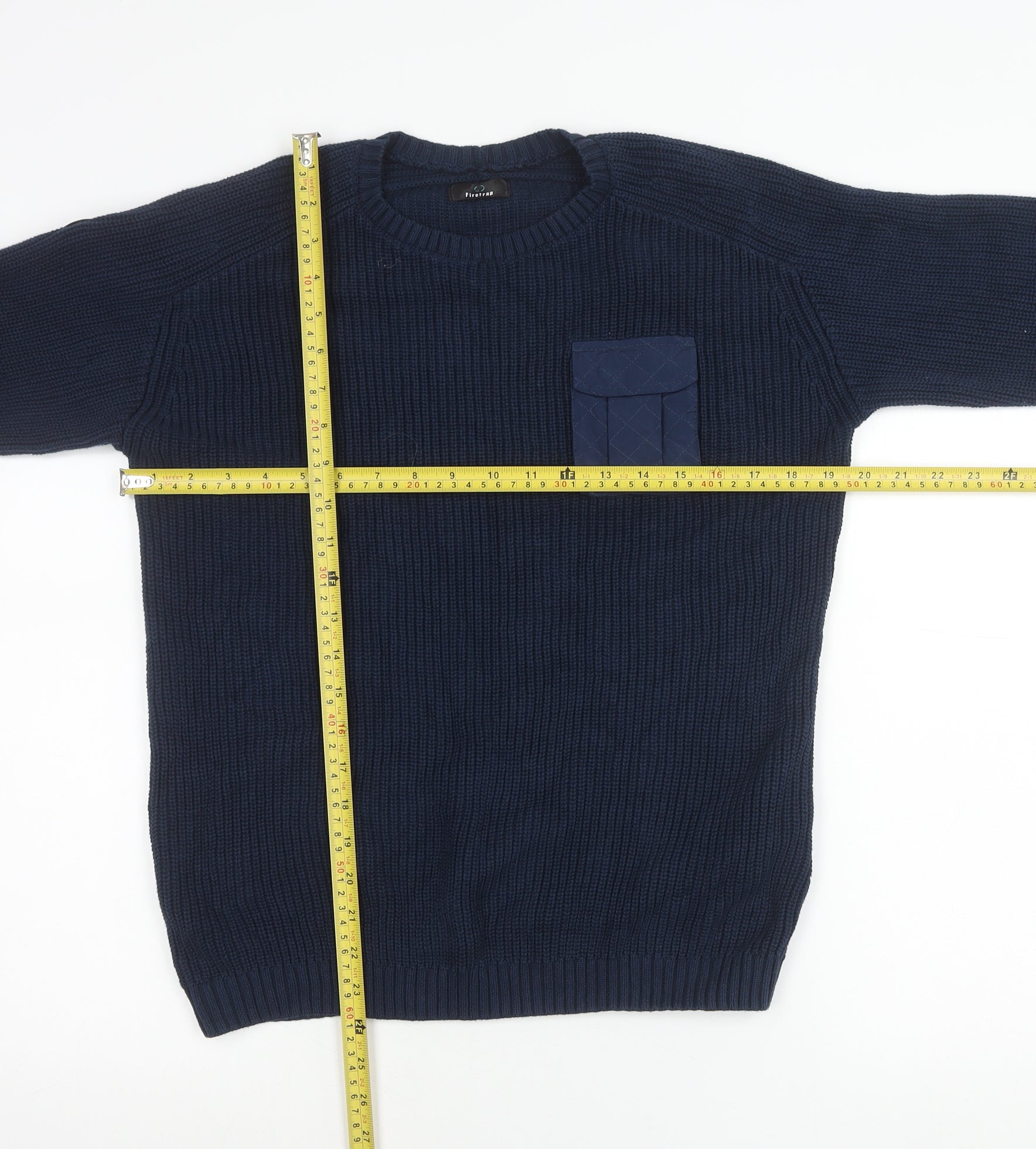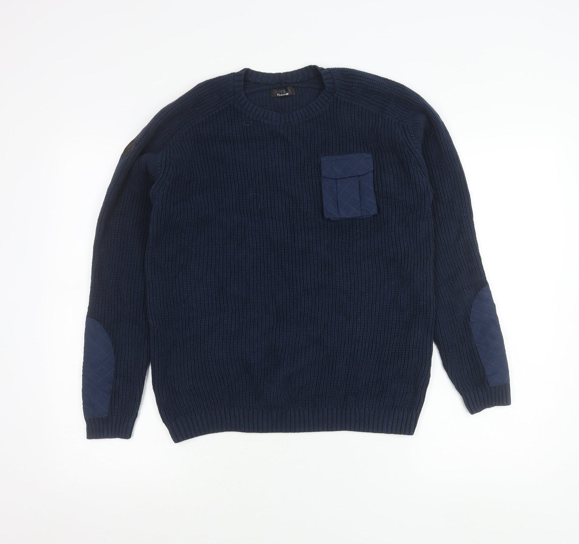 Firetrap Boys Blue 13 Years Crew Neck Pullover Jumper with Elbow Patches