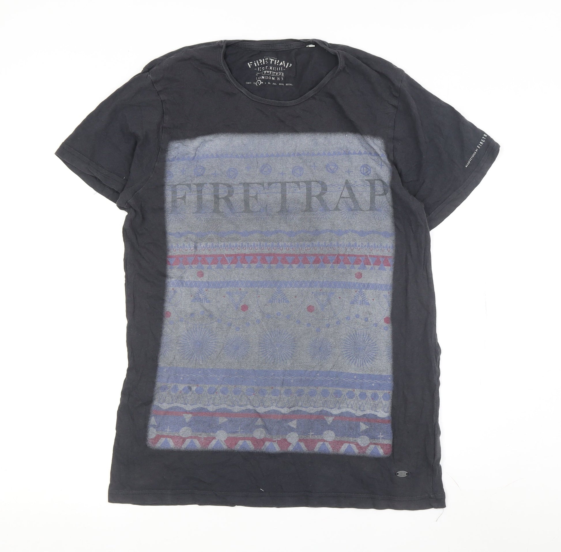 Firetrap Men's Black Graphic Print Regular Fit T-Shirt
