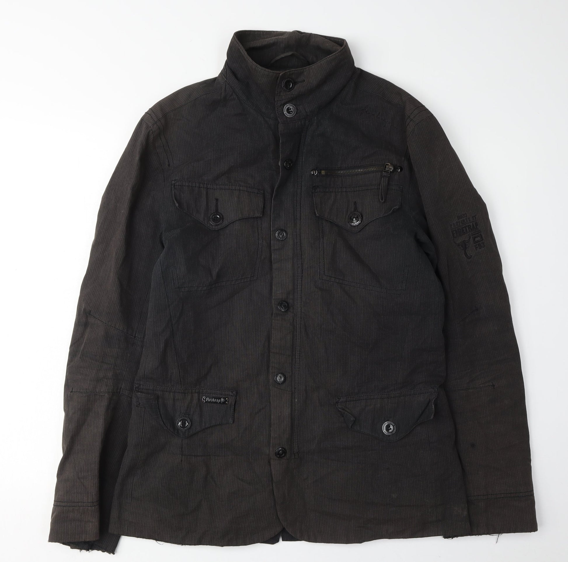 Firetrap Men's Black Jacket M Collared Button Cotton