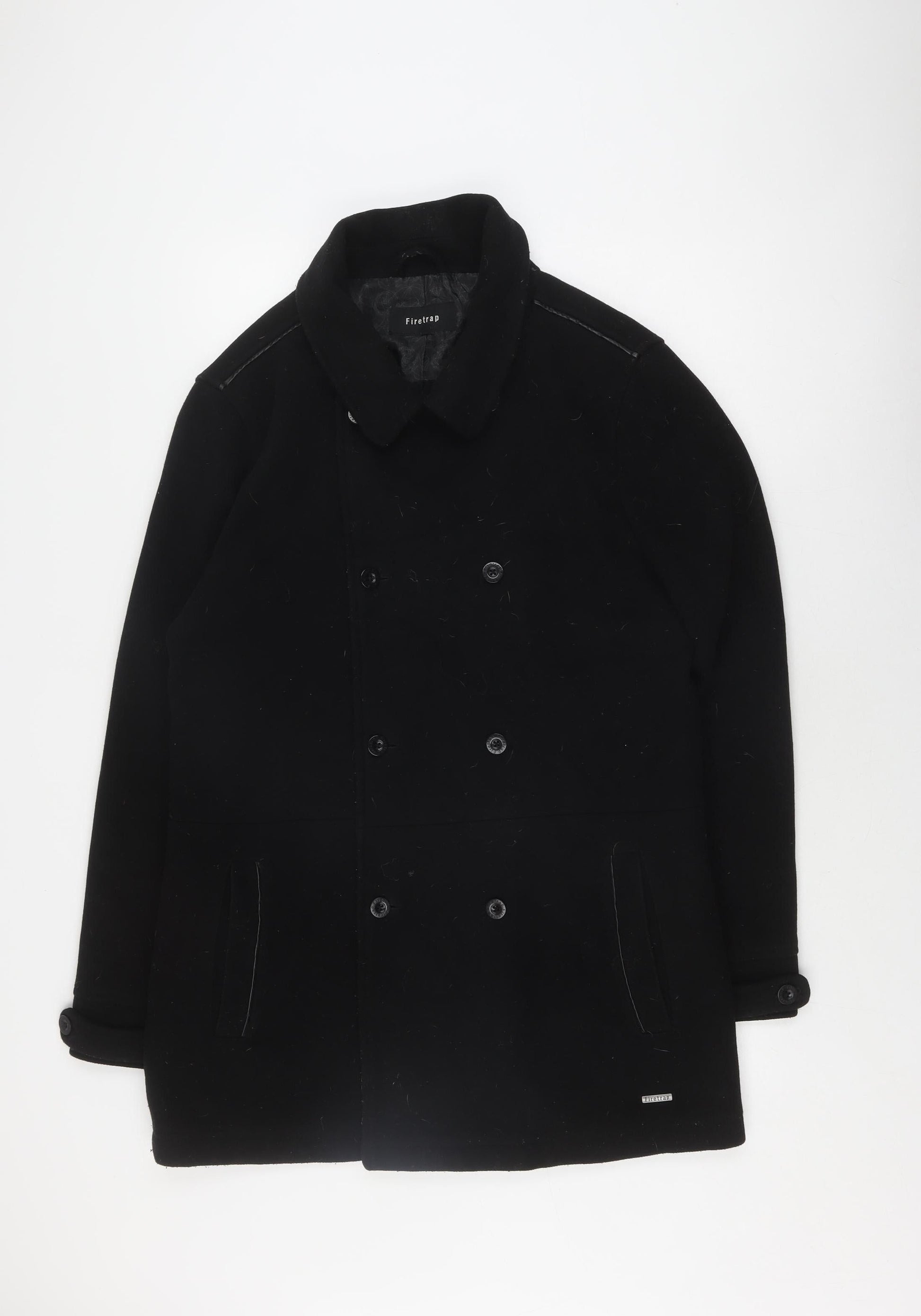 Firetrap Men's Black Pea Coat Lined Size L