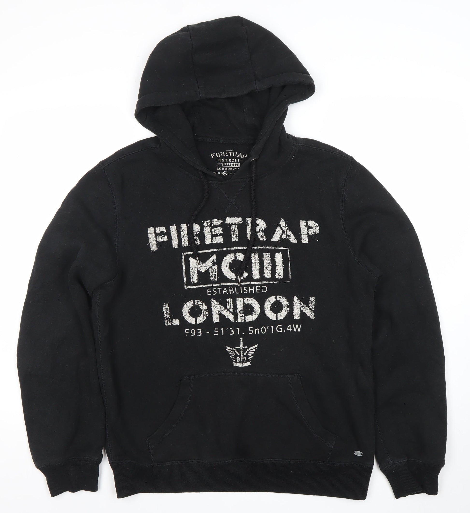 Firetrap Men's Black Pullover Hoodie Size M London Graphic Print