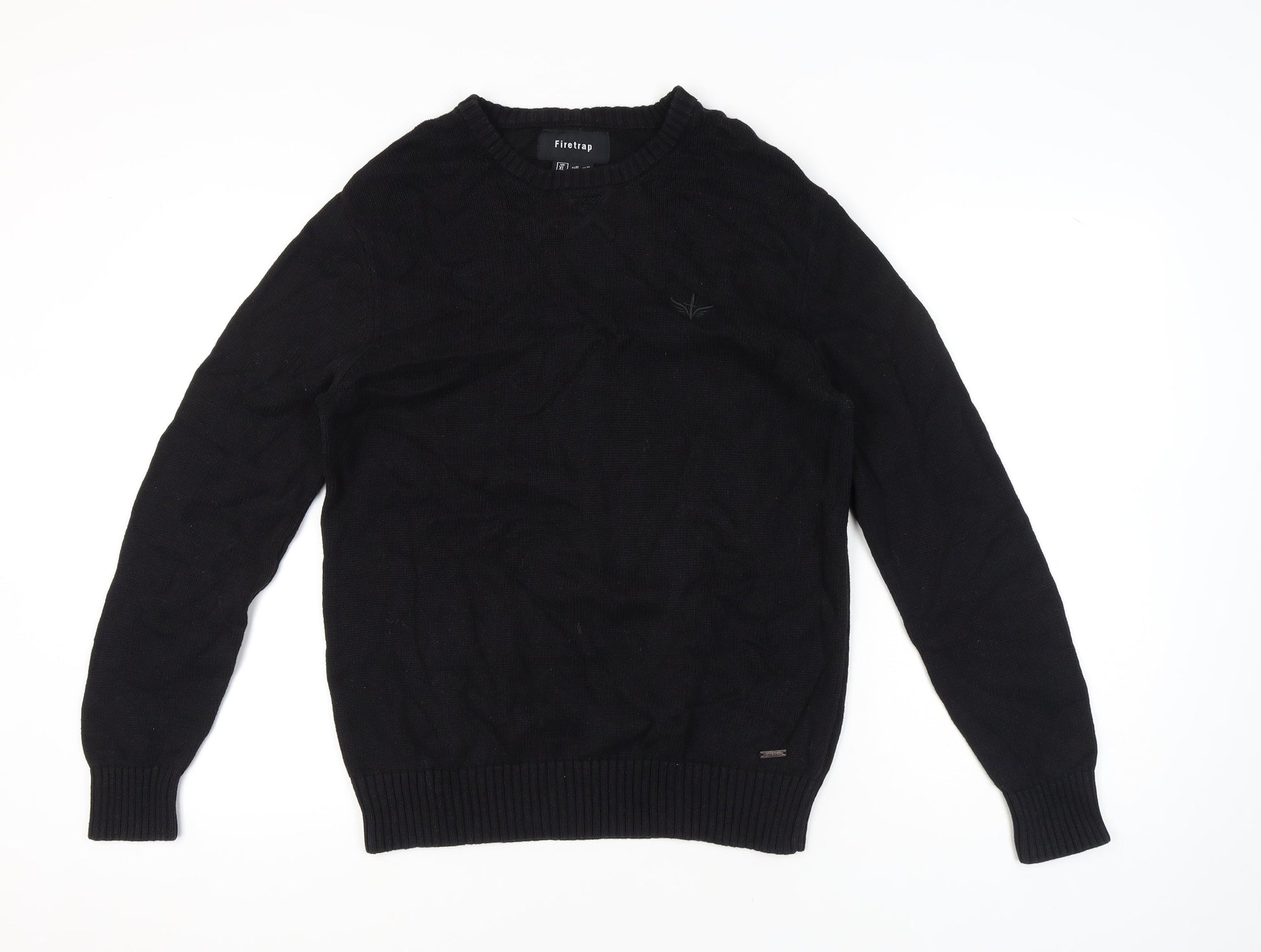 Firetrap Mens Black XL Crew Neck Pullover Jumper Knitwear Casual