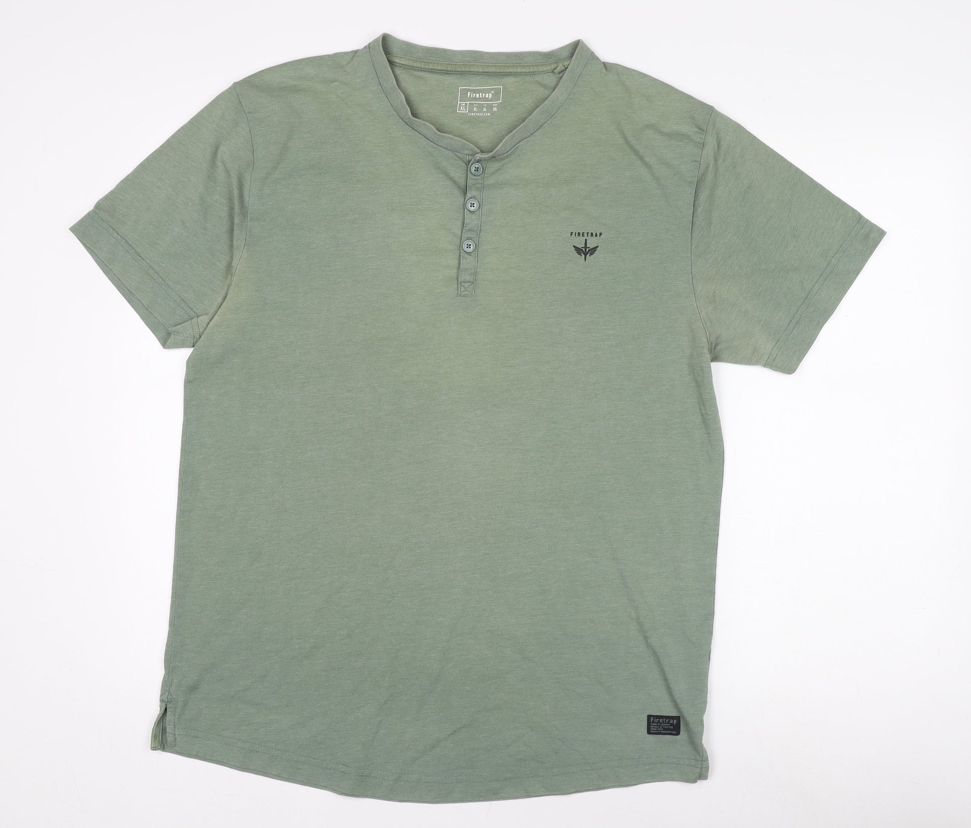 Firetrap Men's Green XL Henley Short Sleeve T-Shirt
