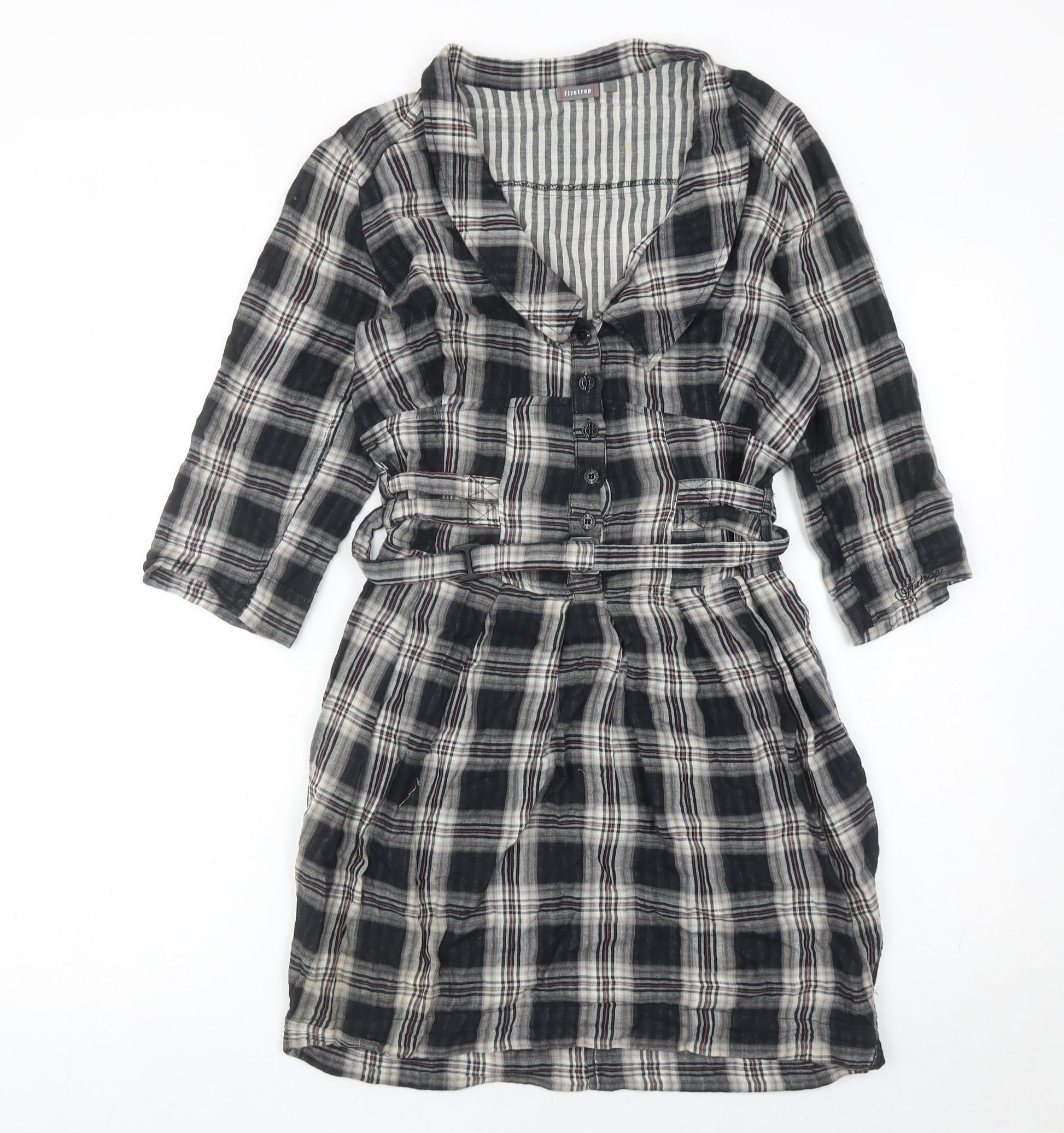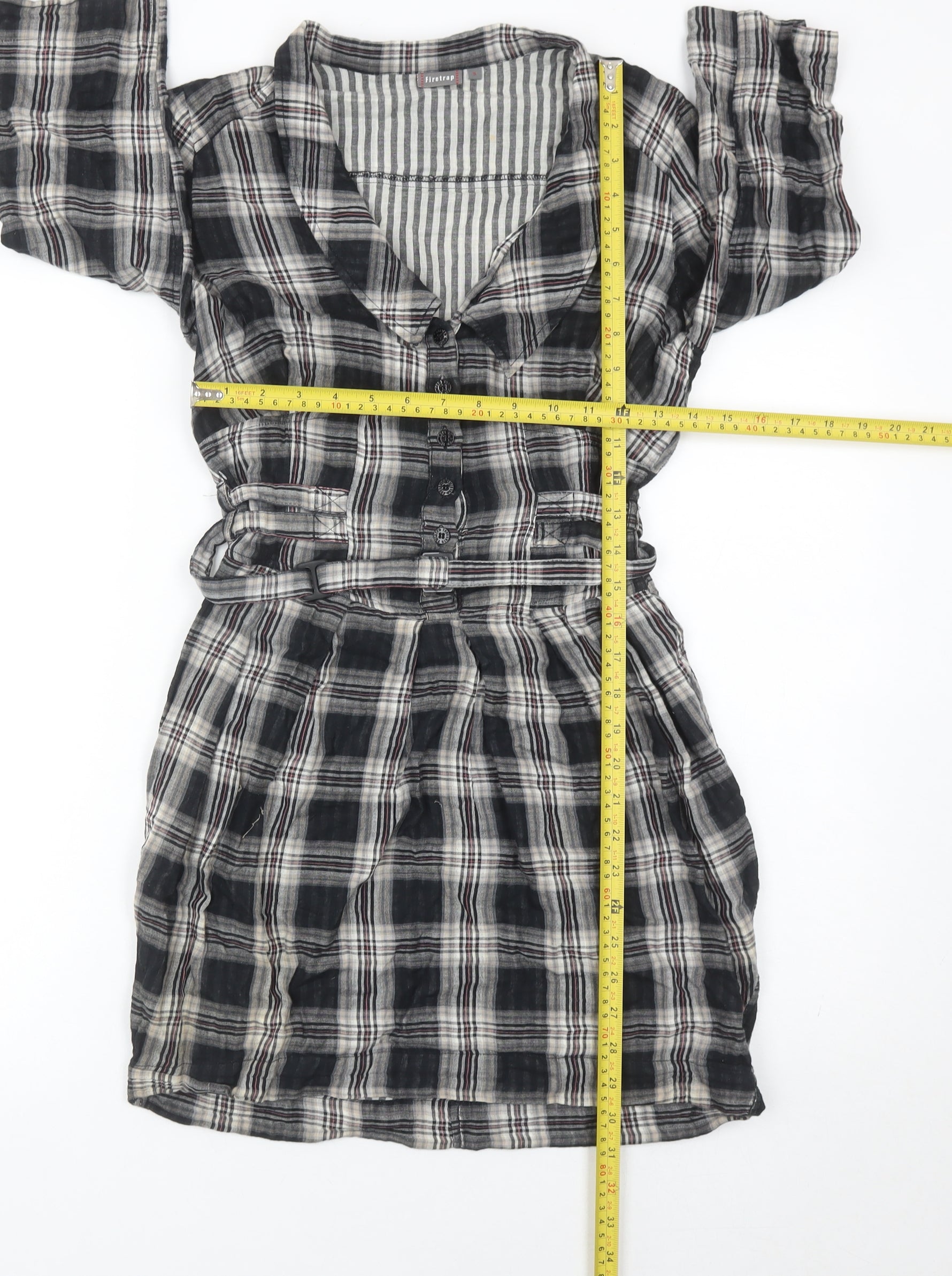 Firetrap Womens Black Check Shirt Dress Size S Belted Casual