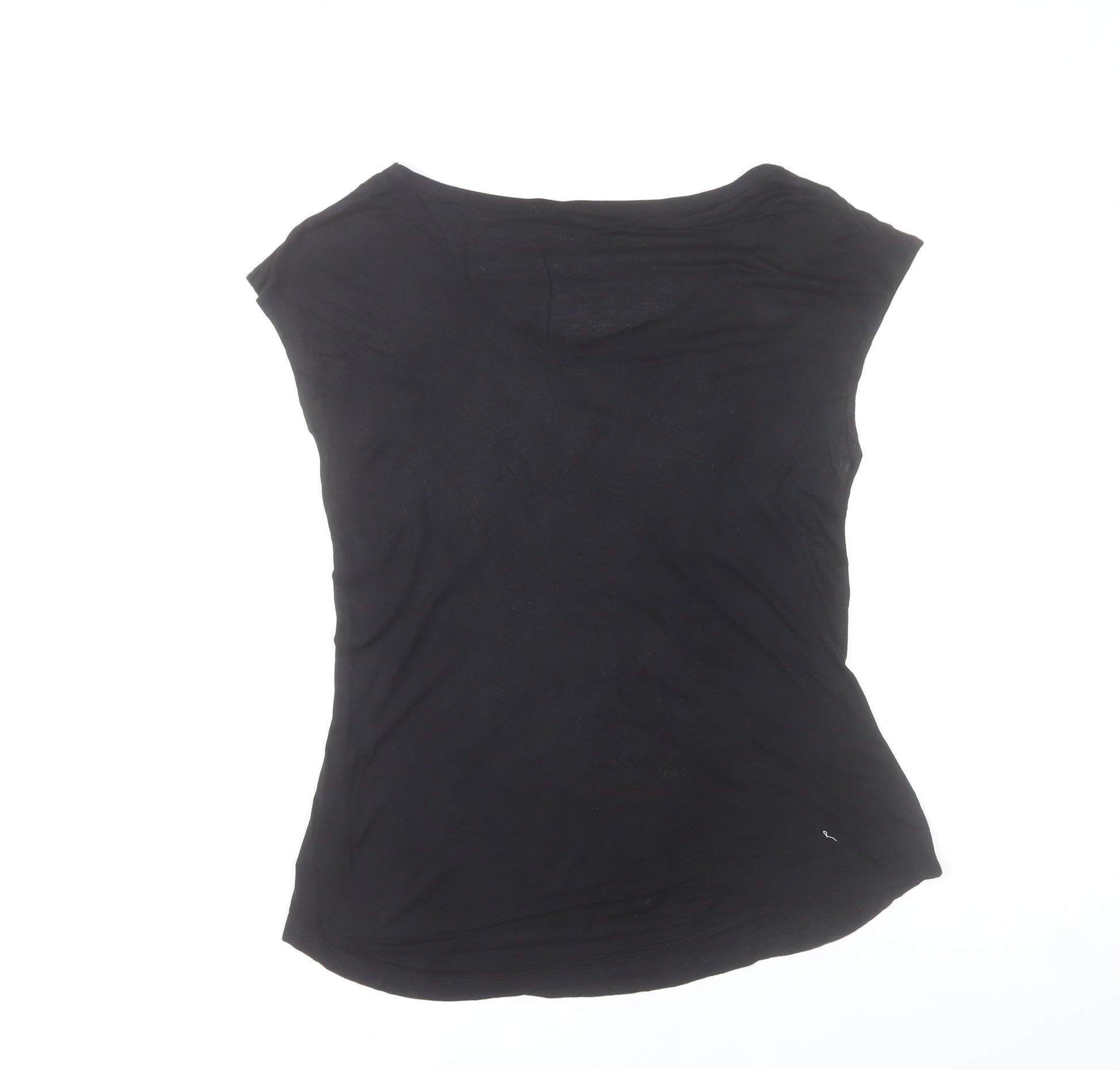 Firetrap Womens Black Scoop Neck Glitter Graphic T-Shirt Size S