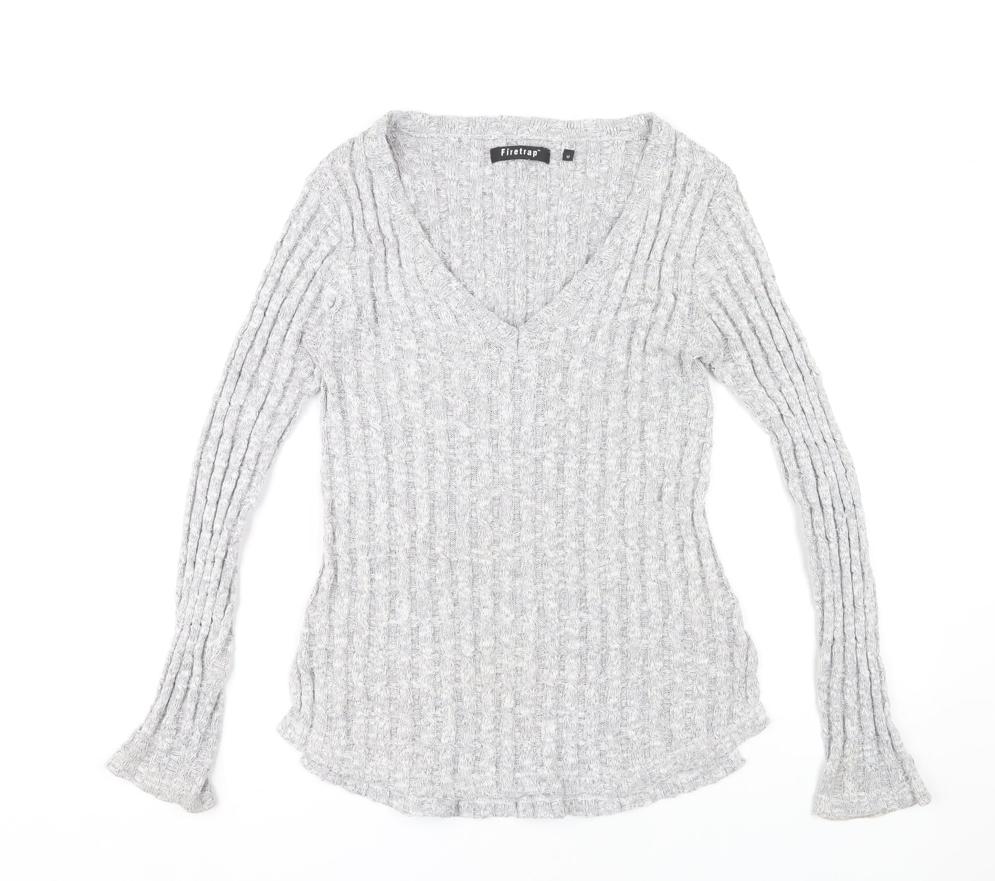 Firetrap Women's Grey V-Neck Pullover Jumper Size 12