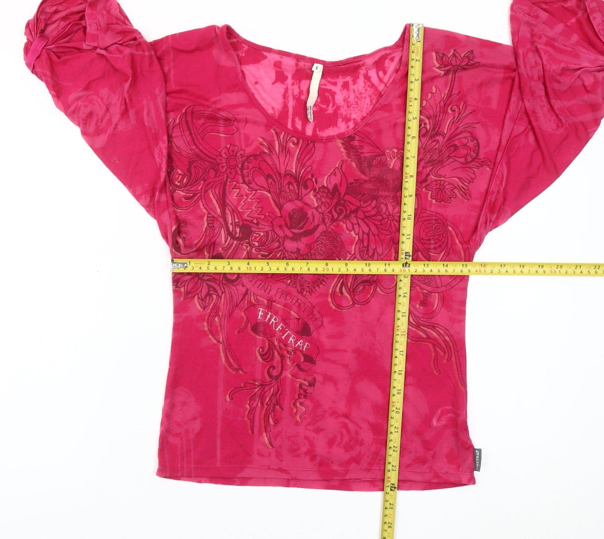 Firetrap Womens Pink Floral Scoop Neck T-Shirt Size S