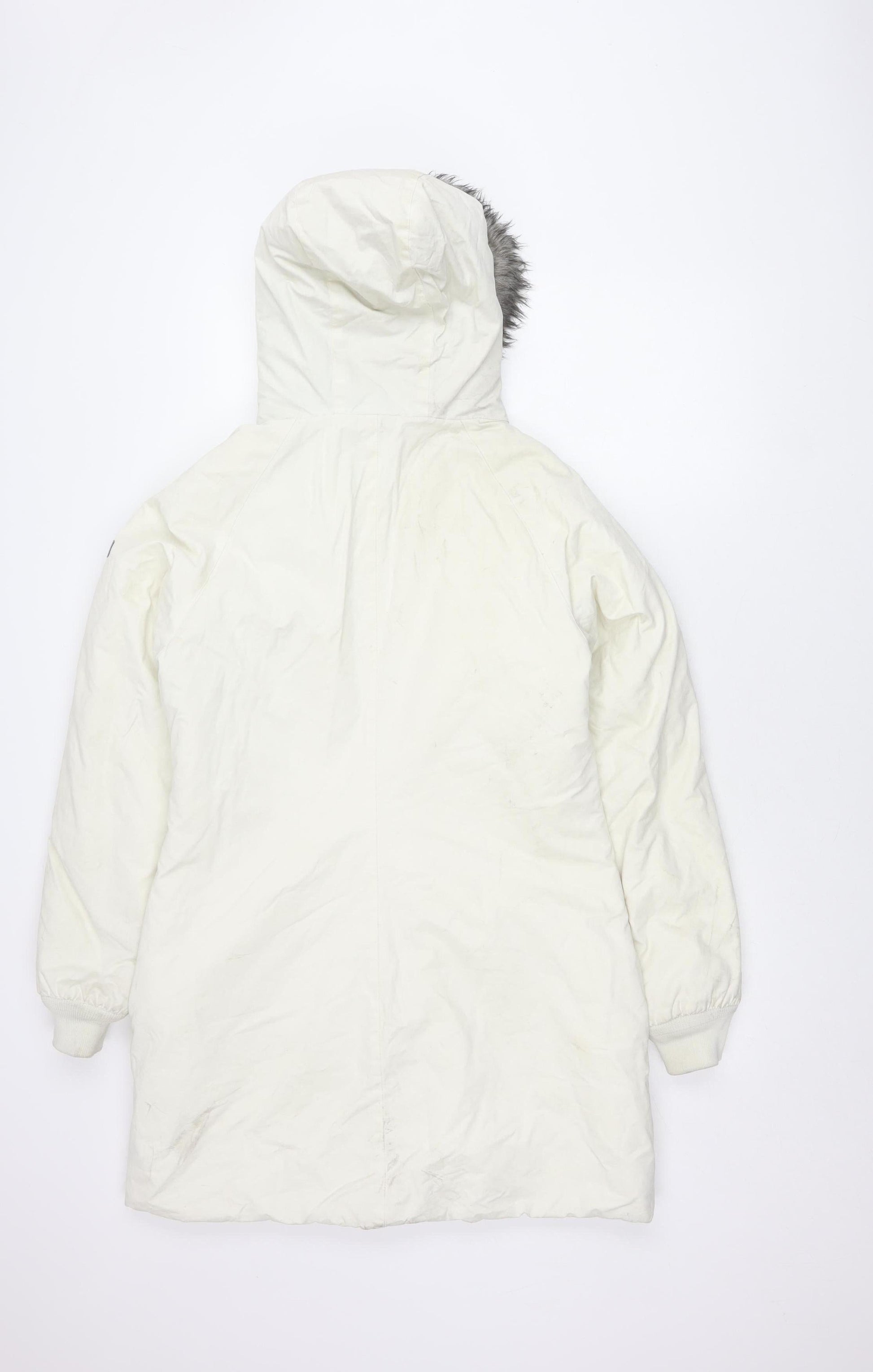 Firetrap Women's White Long Coat, Size M, Hooded, Winter Ready