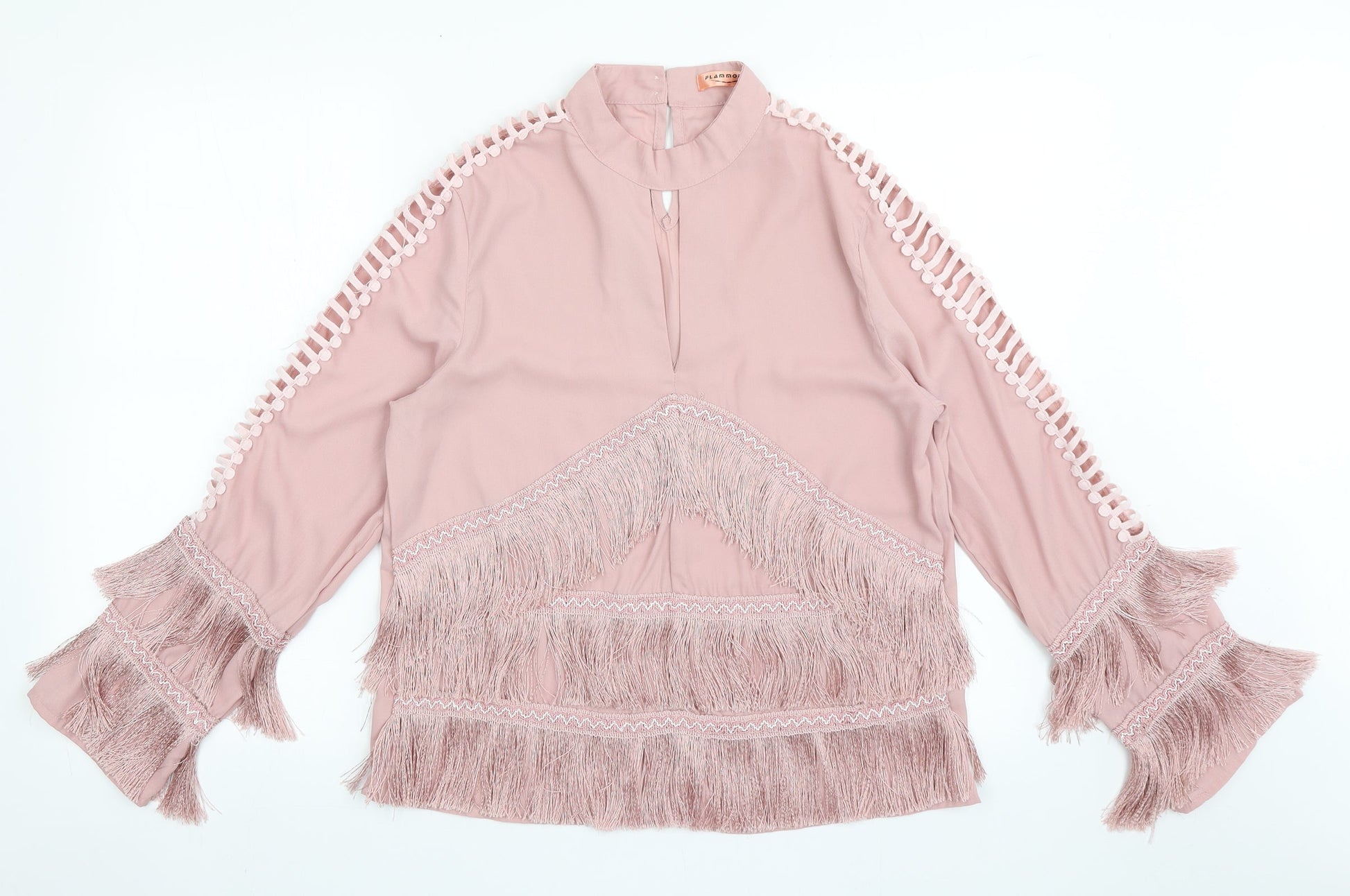 Flammode Womens Pink Polyester Basic Blouse Size M Round Neck