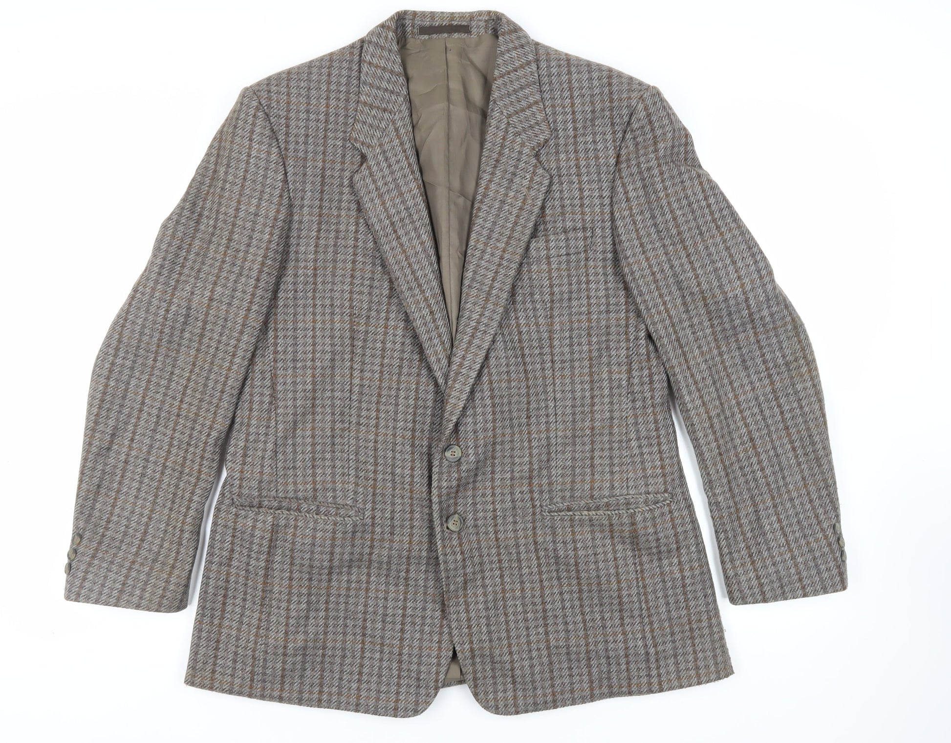 Four Seasons Mens Grey Plaid Jacket Blazer Size 42 Button - Vintage