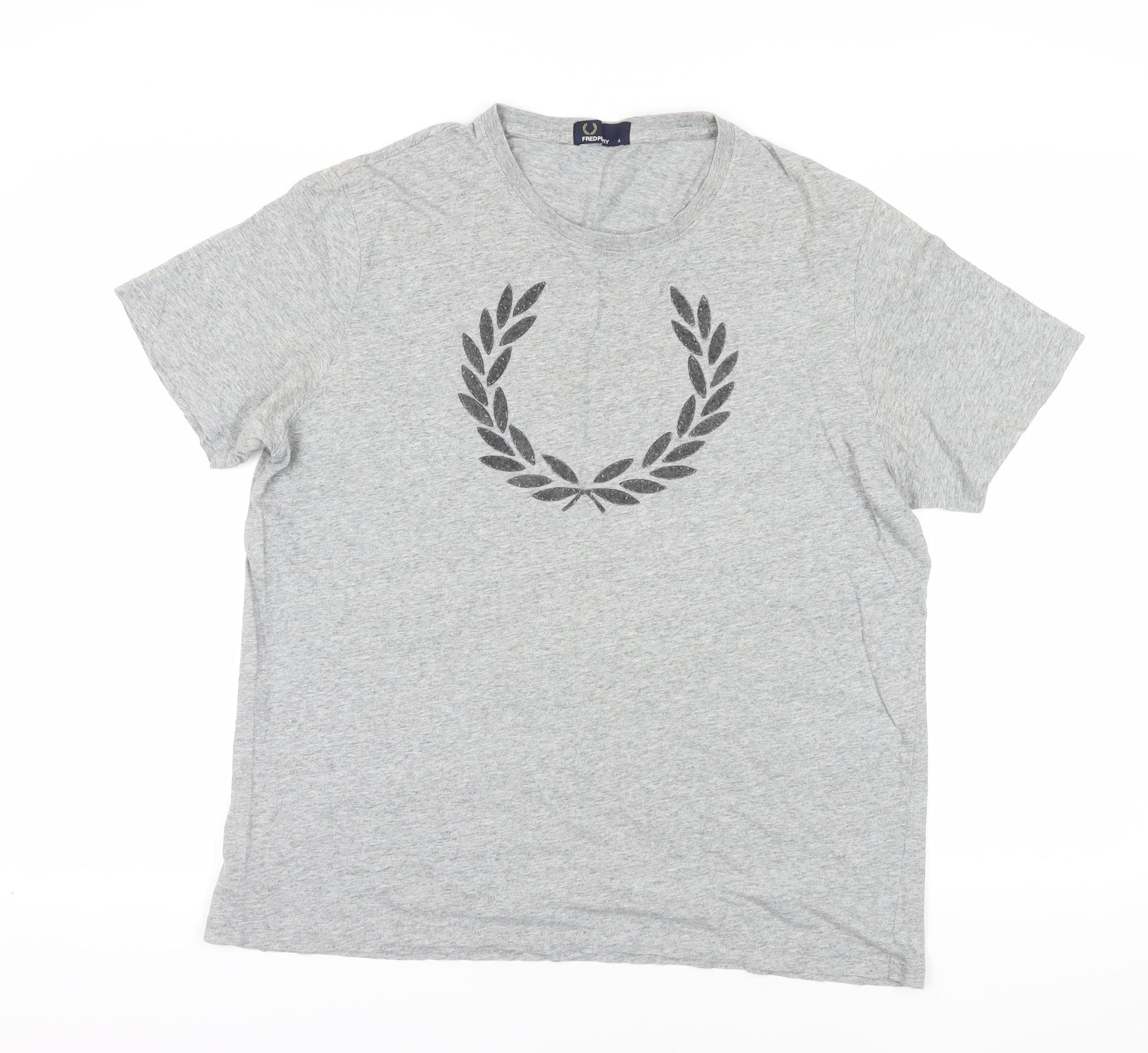 Fred Perry Grey Cotton Logo T-Shirt, Medium