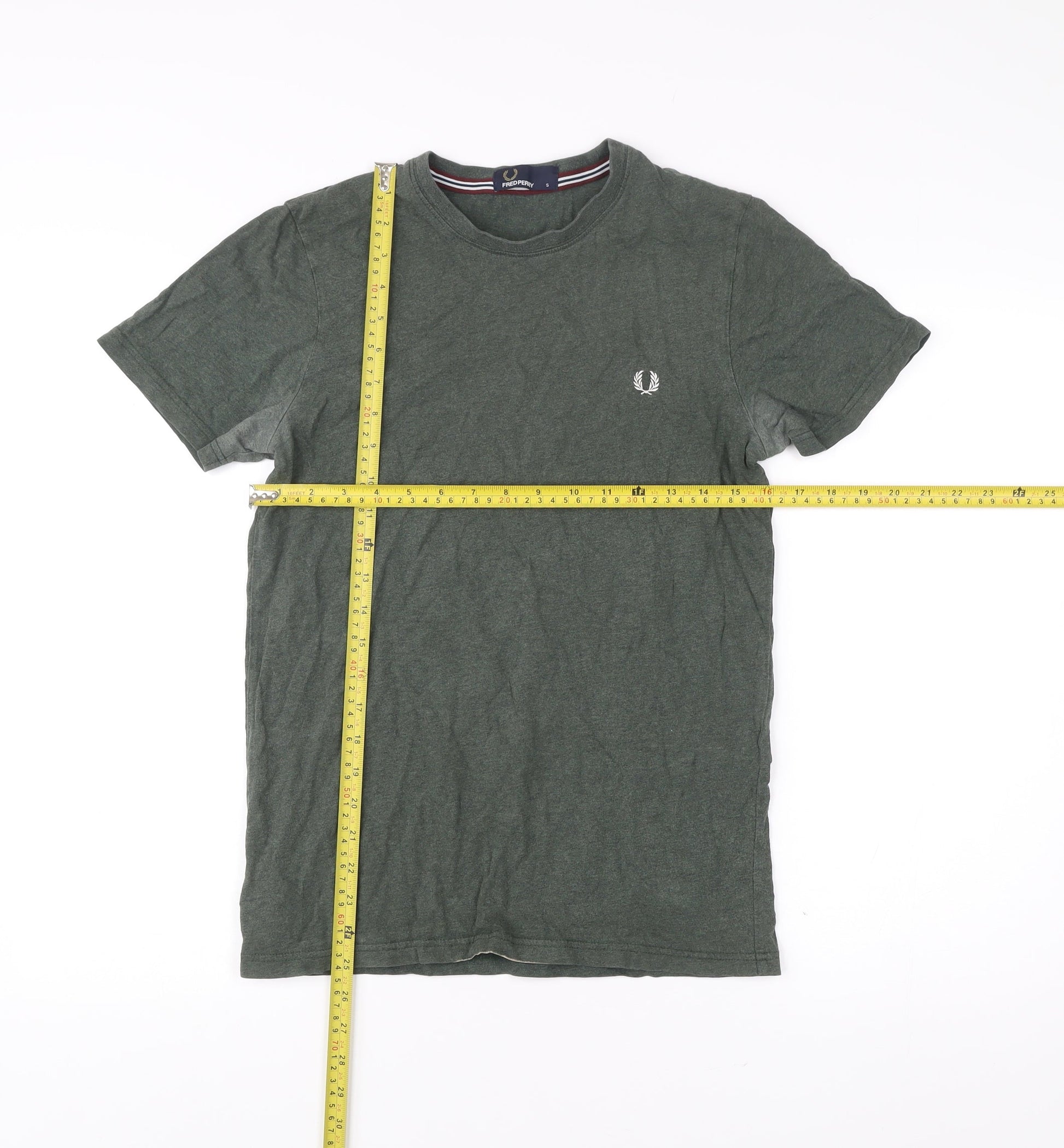 Fred Perry Men’s Green Small Crew Neck Cotton T-Shirt