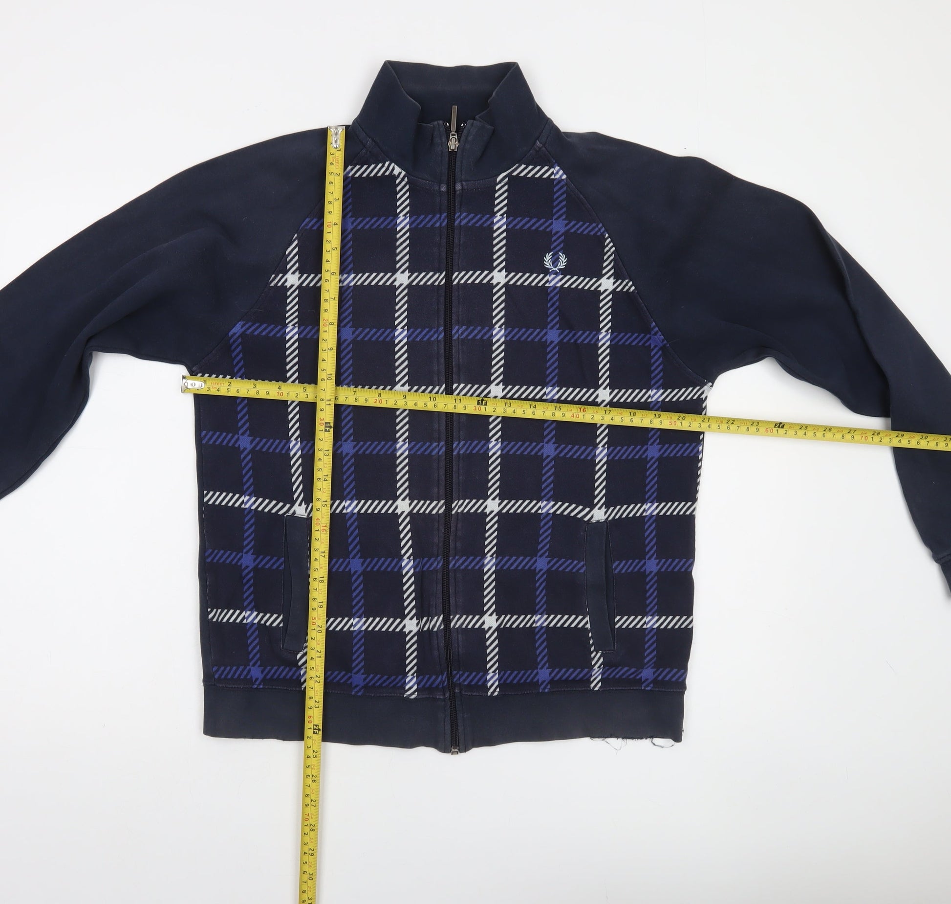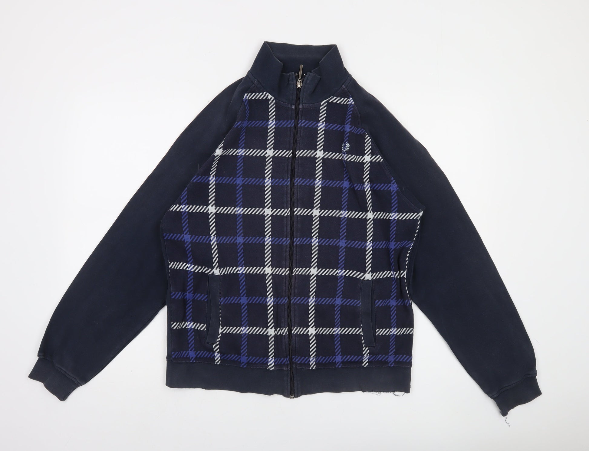 Fred Perry Men's Blue Check Cotton Zip Jacket Size M