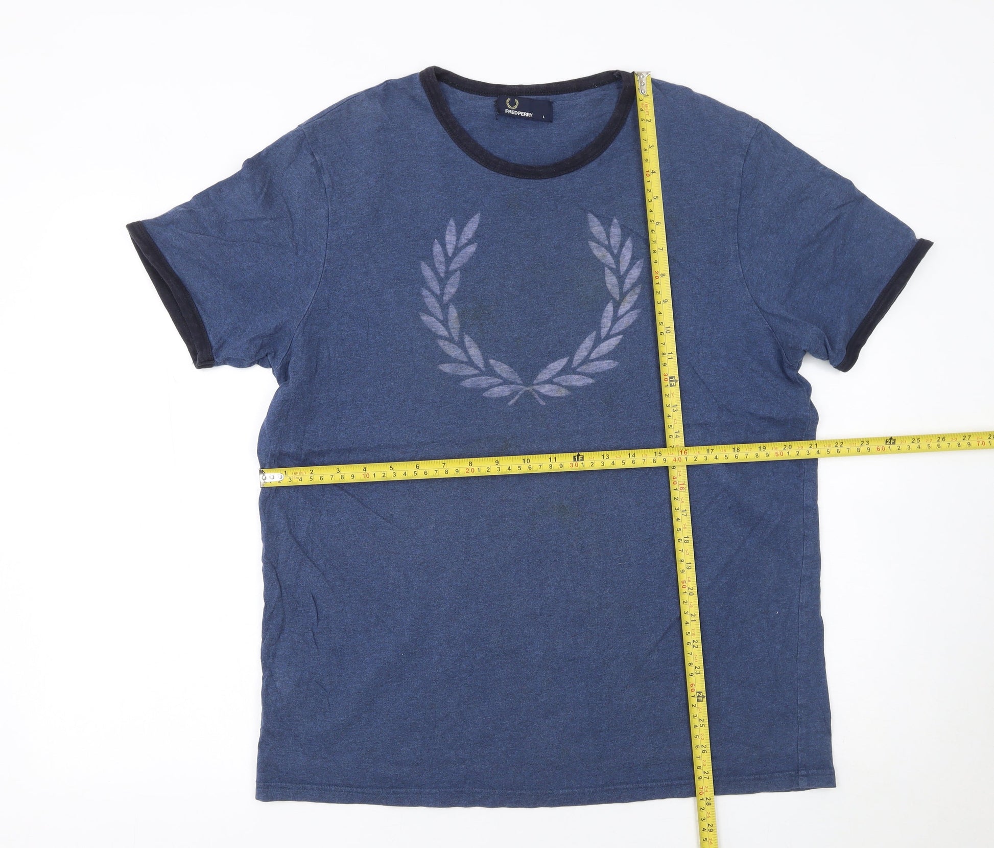 Fred Perry Men's Blue Crew Neck Cotton Laurel Wreath T-Shirt L