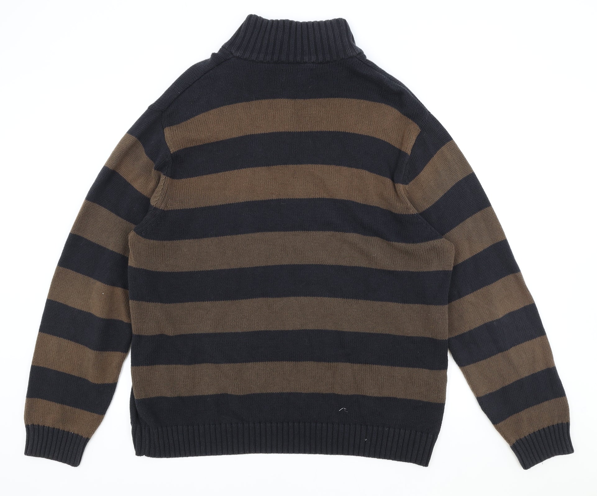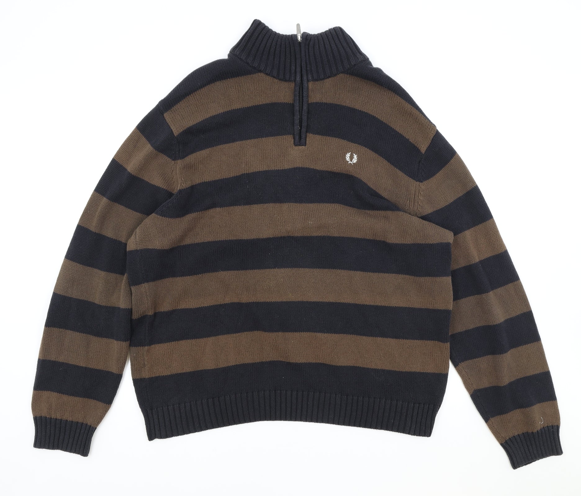 Fred Perry Mens Brown High Neck Striped Cotton Pullover Jumper Size XL Long Sleeve