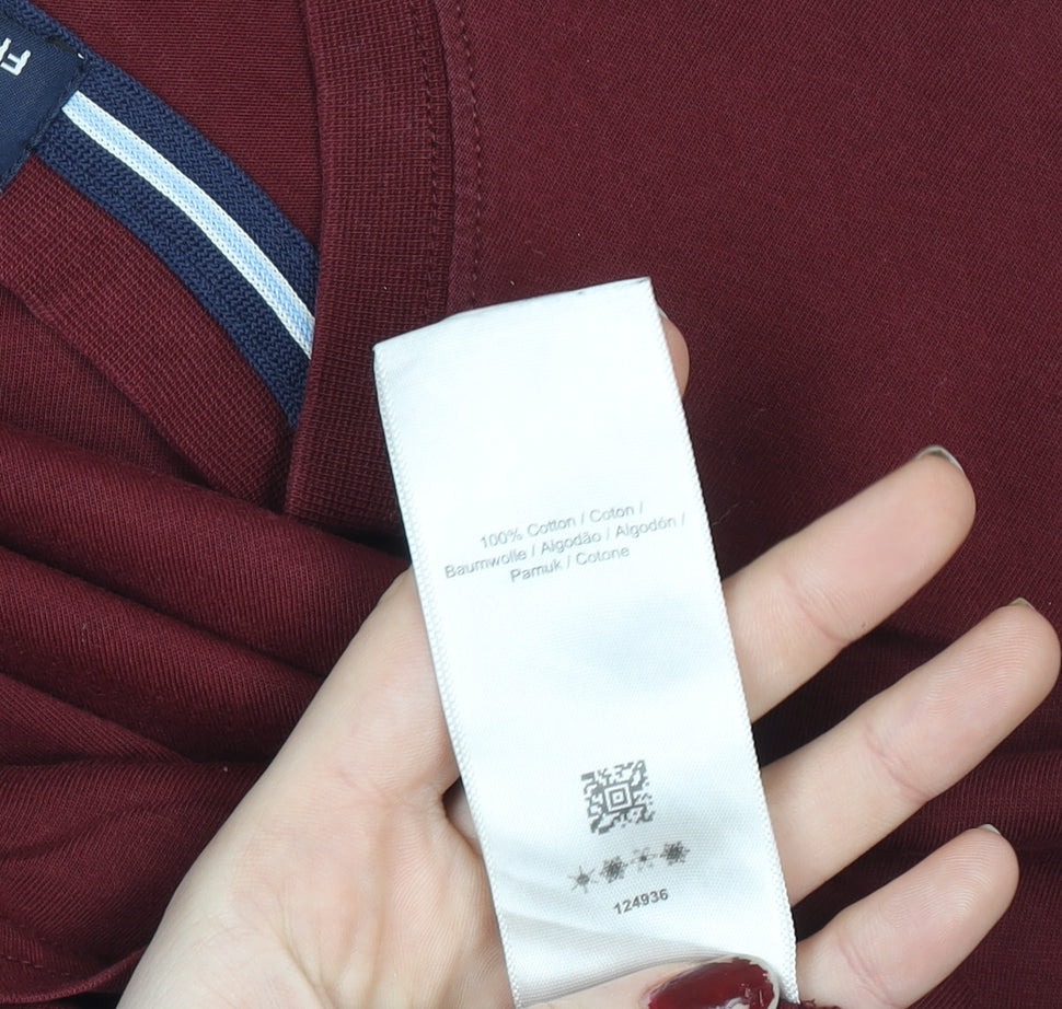 Fred Perry Men's Burgundy Cotton Crew Neck Short Sleeve T-Shirt Size M