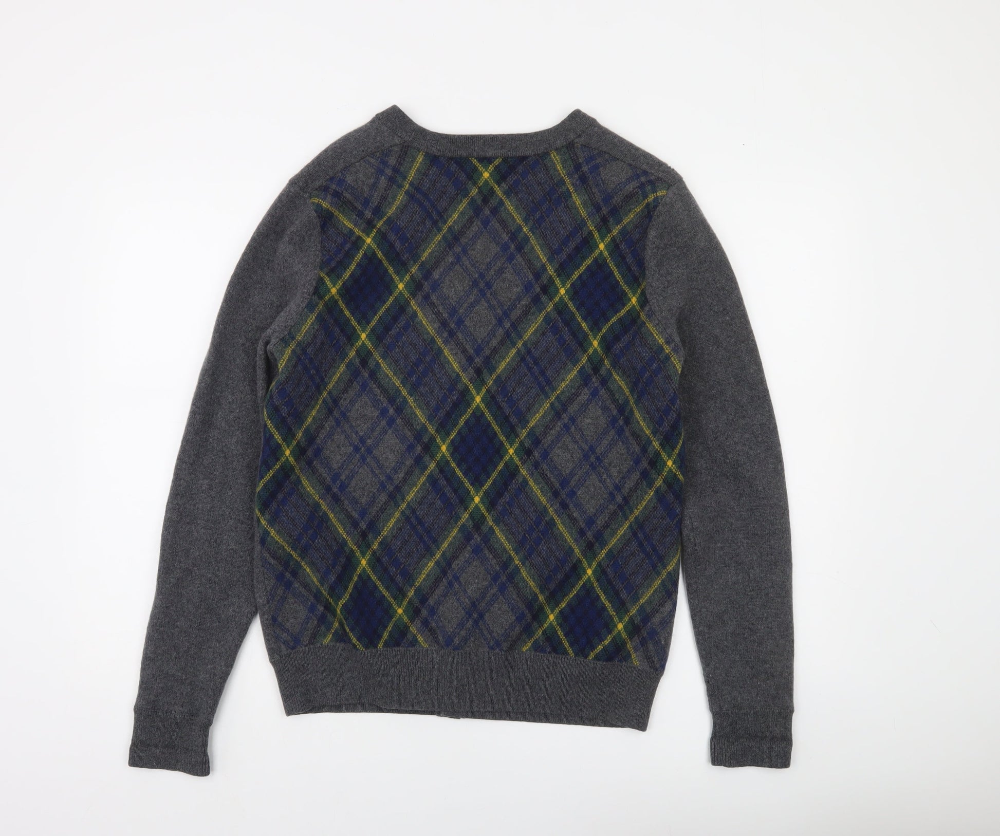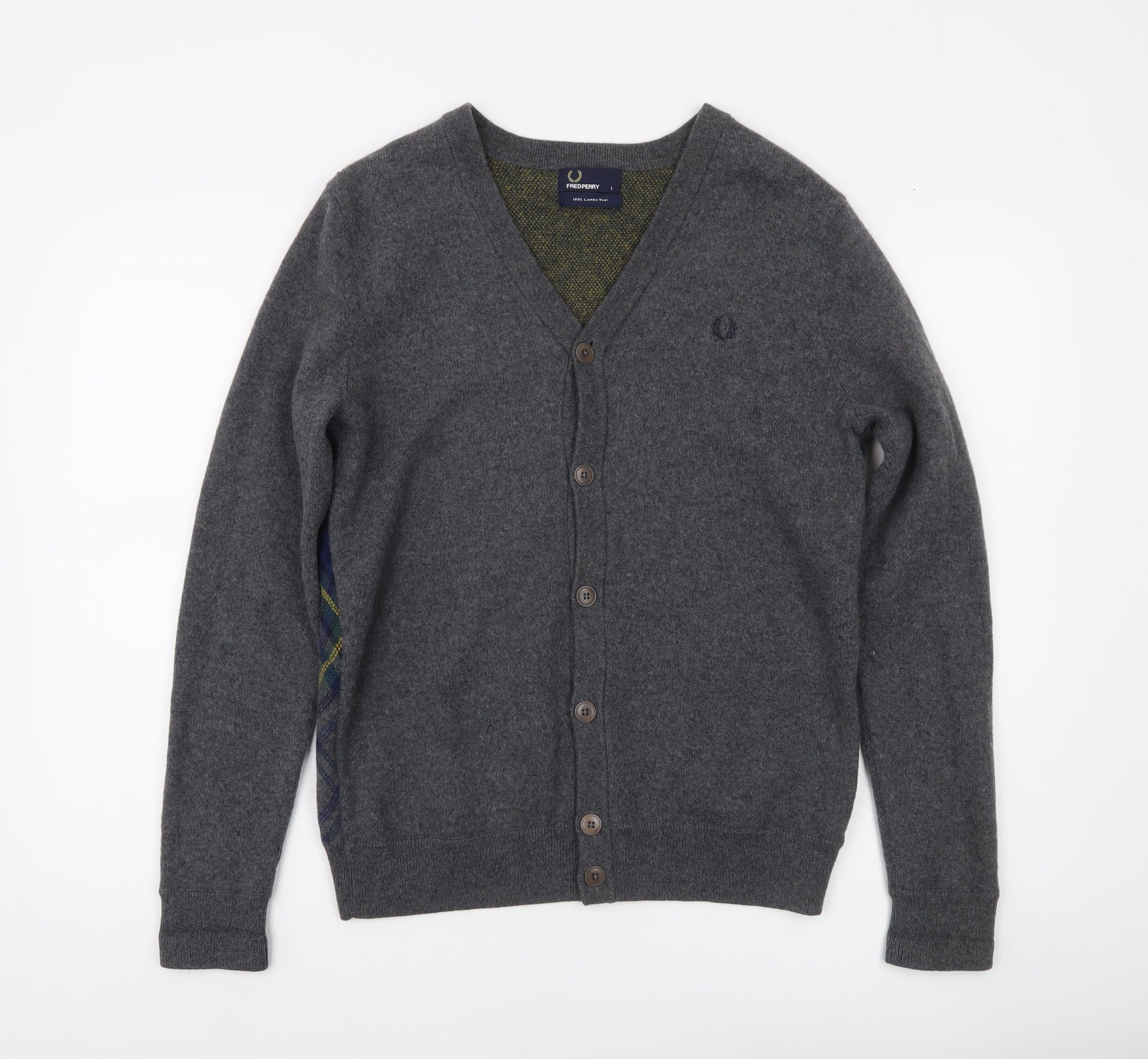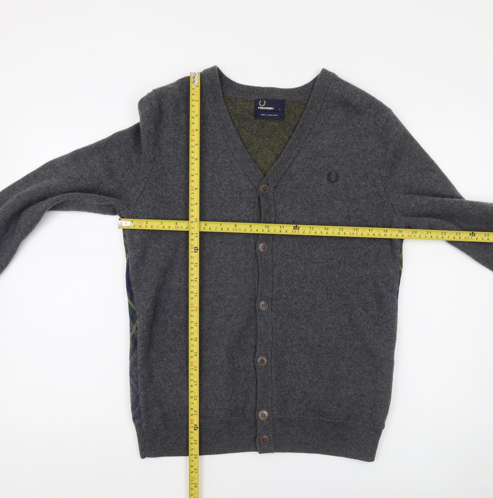 Fred Perry Men's Grey Wool Argyle Cardigan L V-Neck Classic Style
