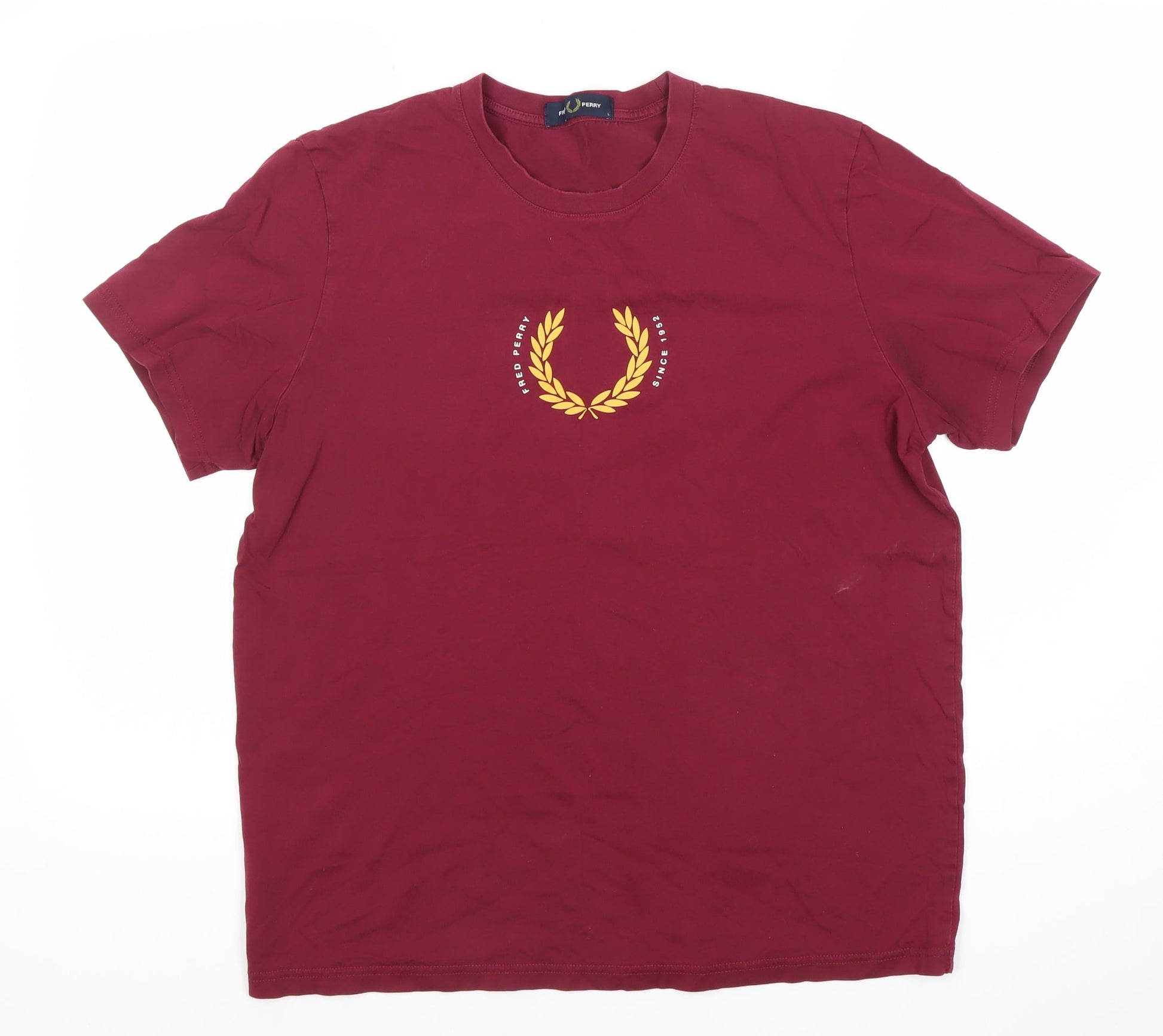 Fred Perry Mens Red Large Logo Short Sleeve Cotton T-Shirt