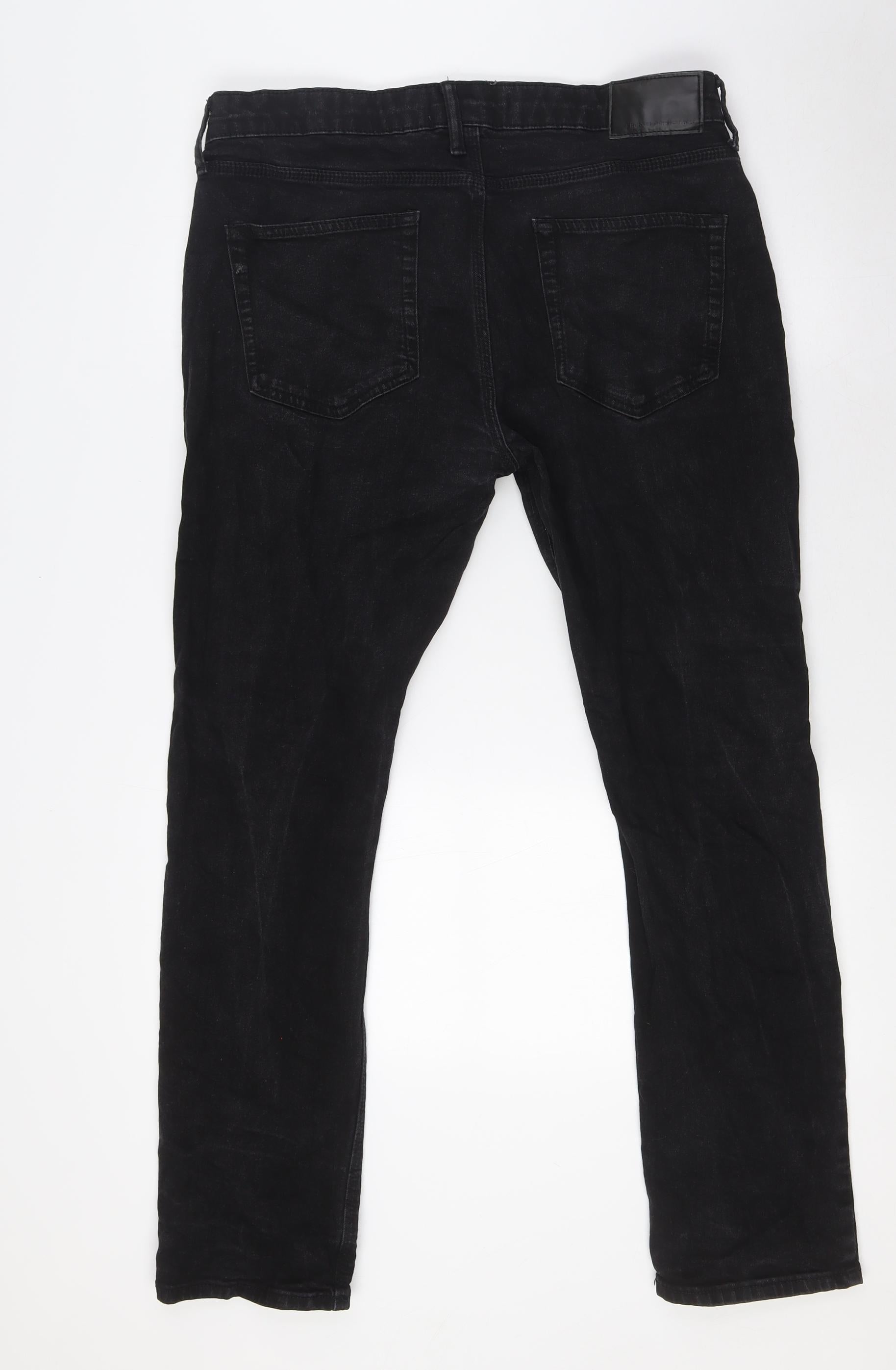 French Connection Mens Black Cotton Straight Jeans Size 36 in L30 in Slim Button