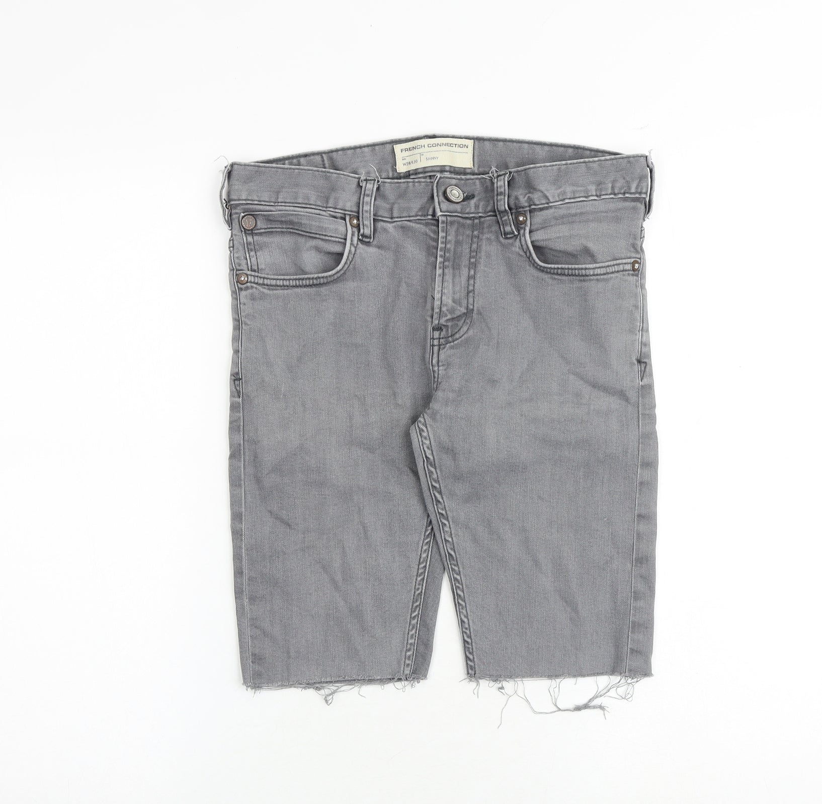 French Connection Mens Grey Cotton Chino Shorts Size 28 in Slim Zip - Frayed Hem