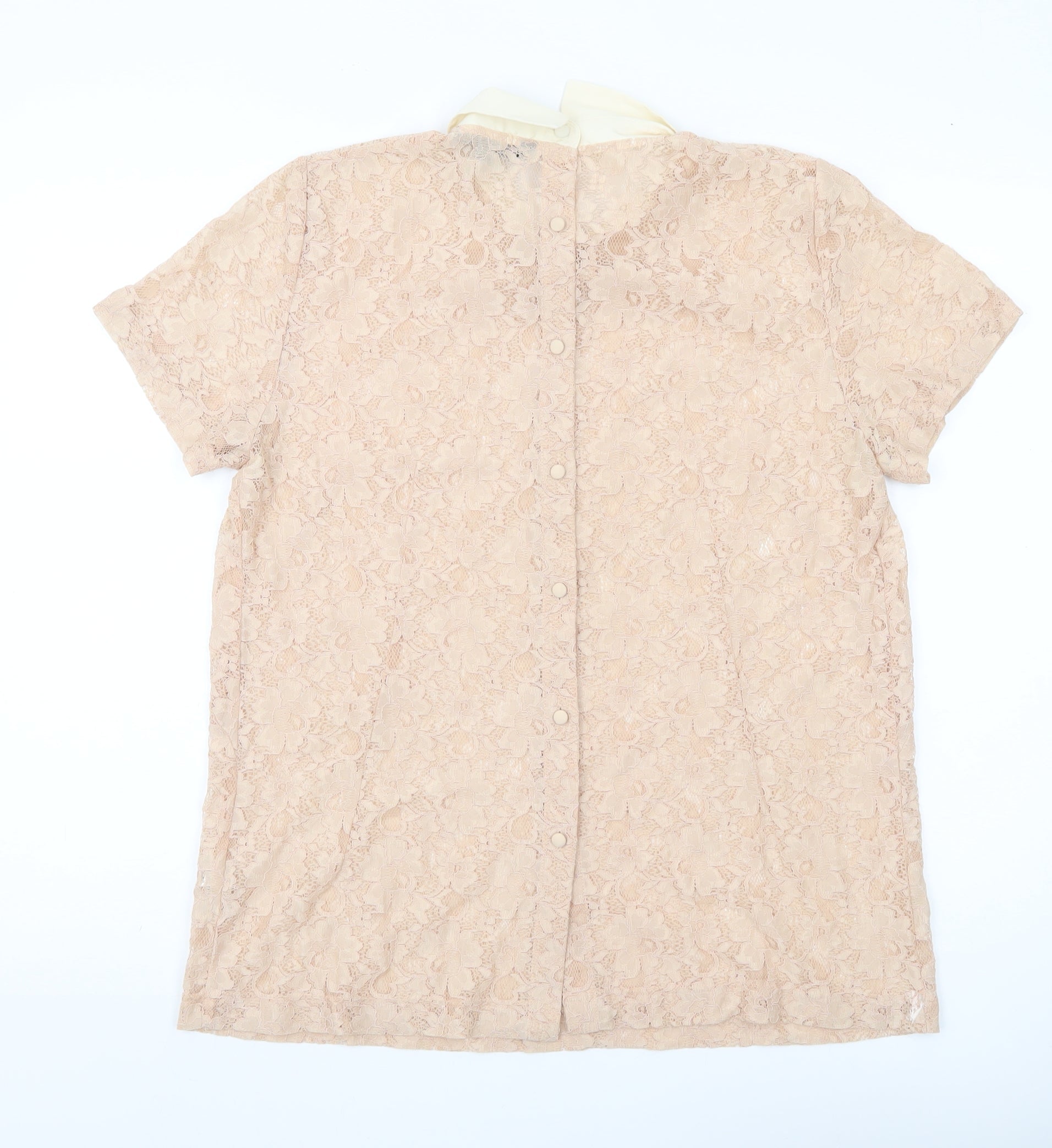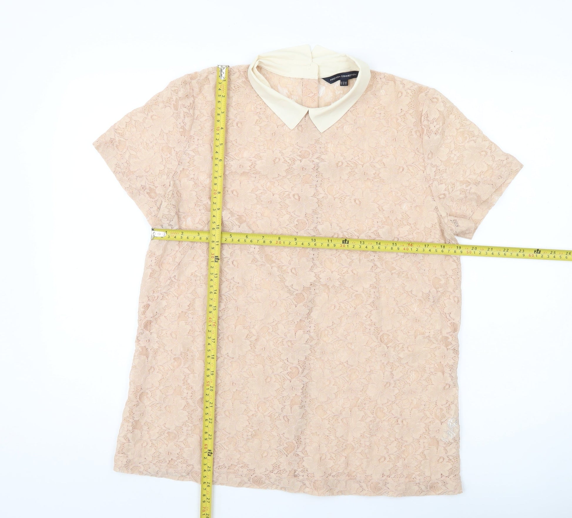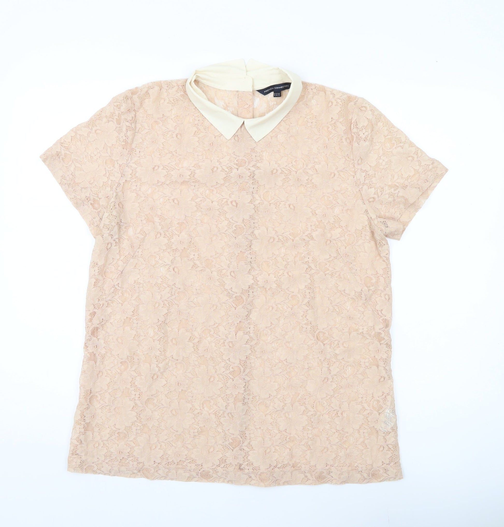 French Connection Women’s Beige Lace Collared Blouse Size 14