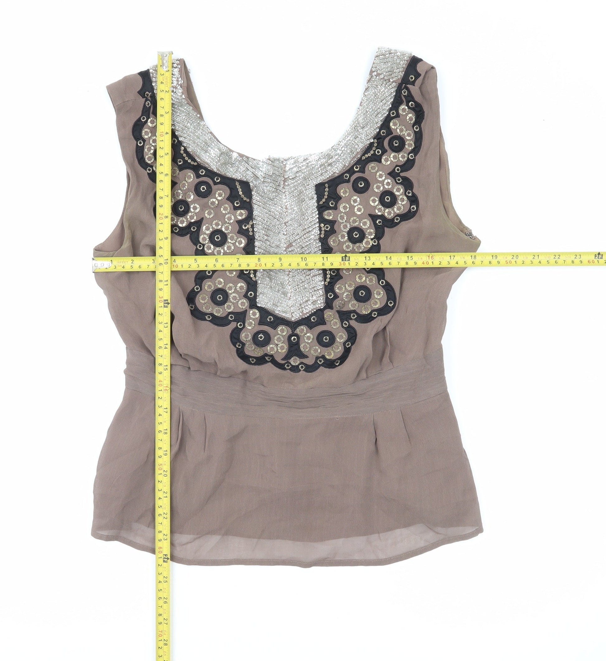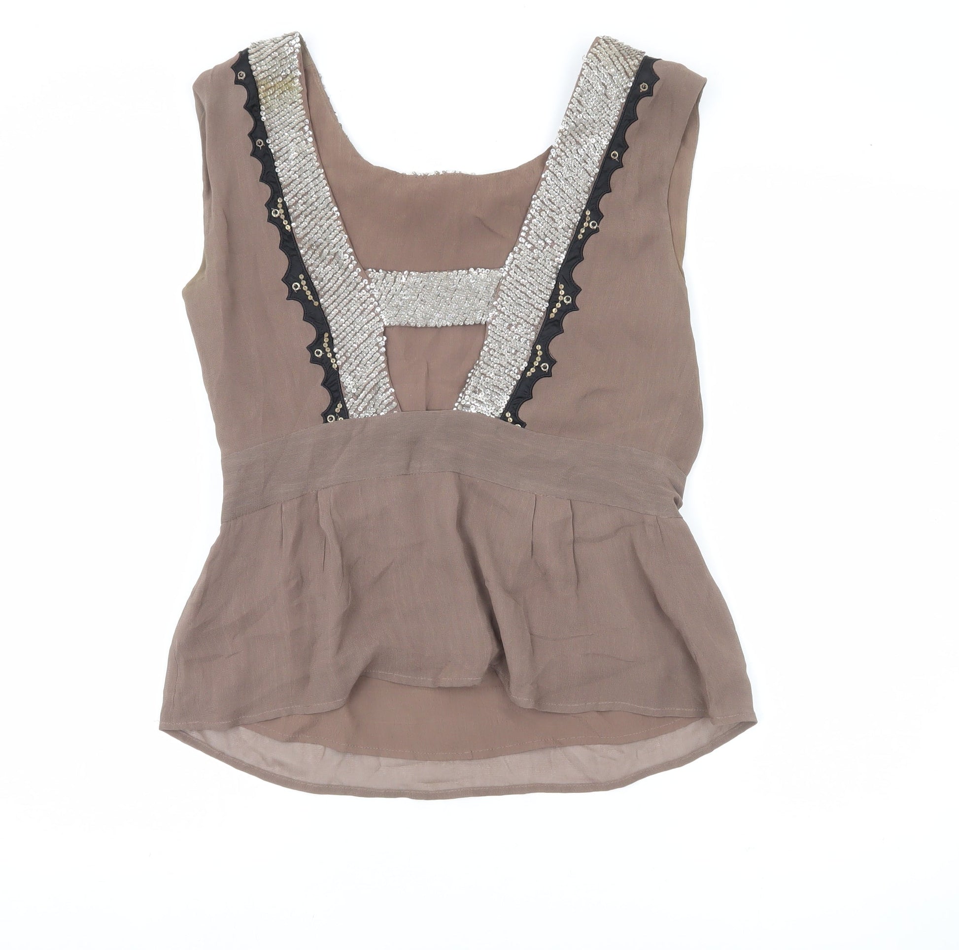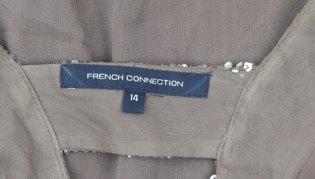 French Connection Women’s Brown Beaded Sequin Tunic Blouse Size 14
