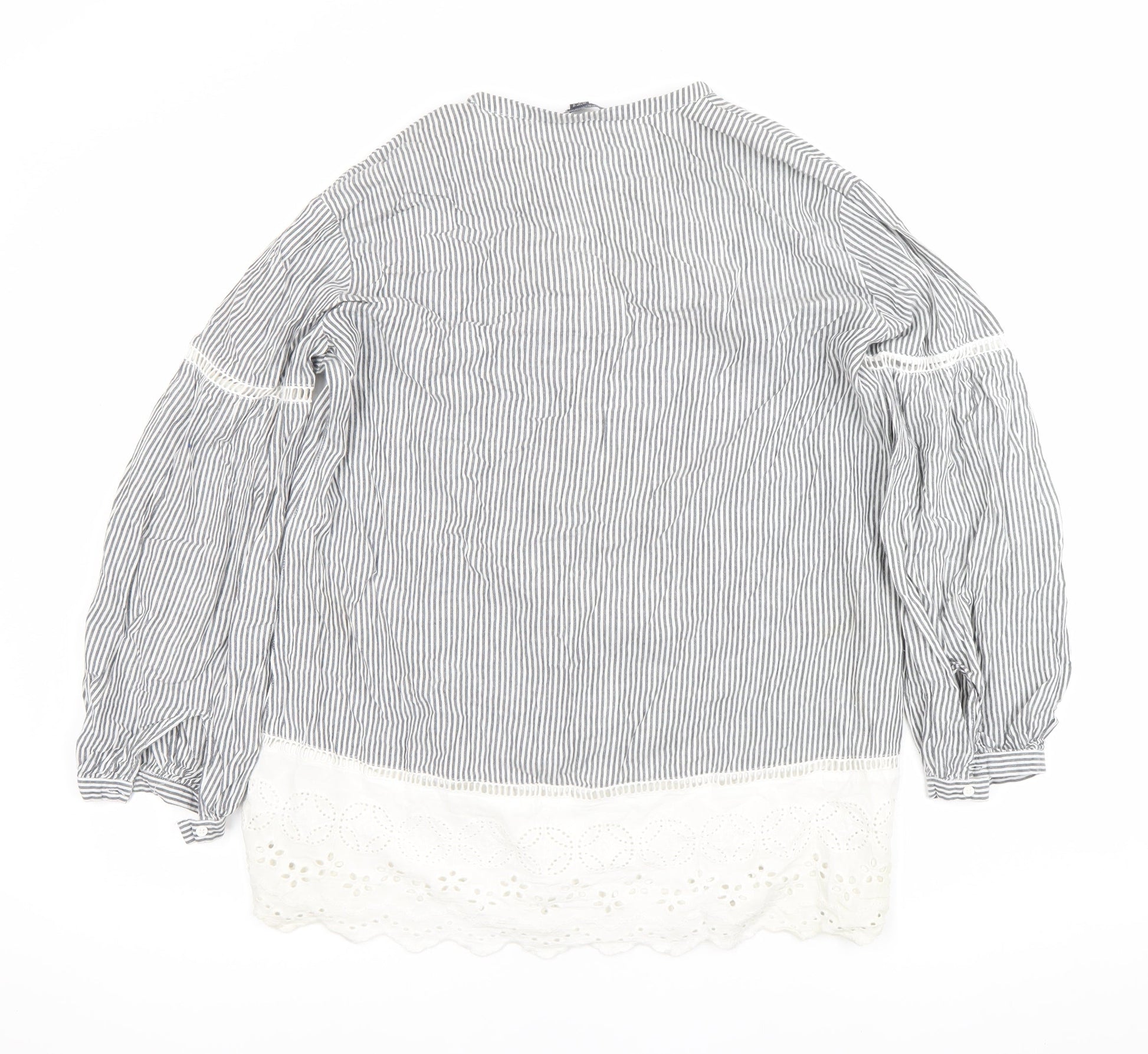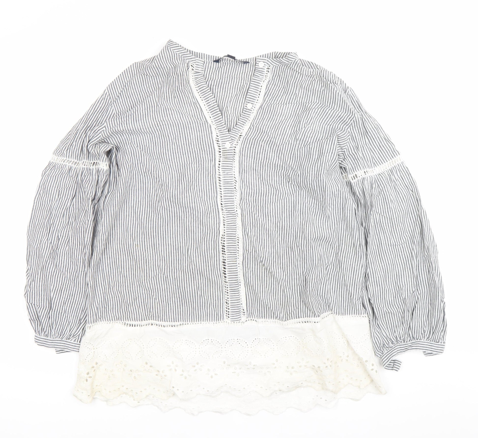French Connection Womens Blue Striped Cotton Tunic Blouse UK 12