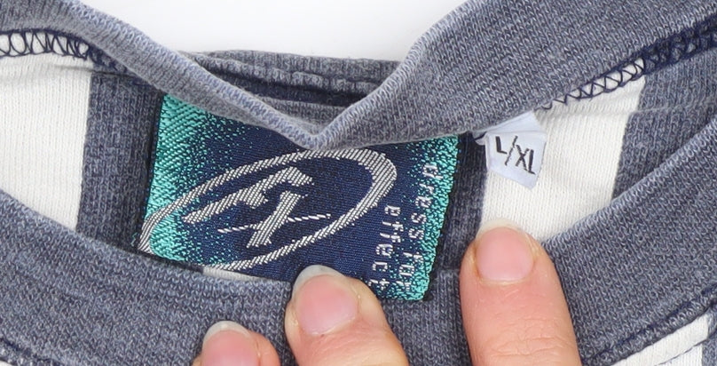 FX Men's Blue & White Striped Cotton Pullover Sweatshirt L