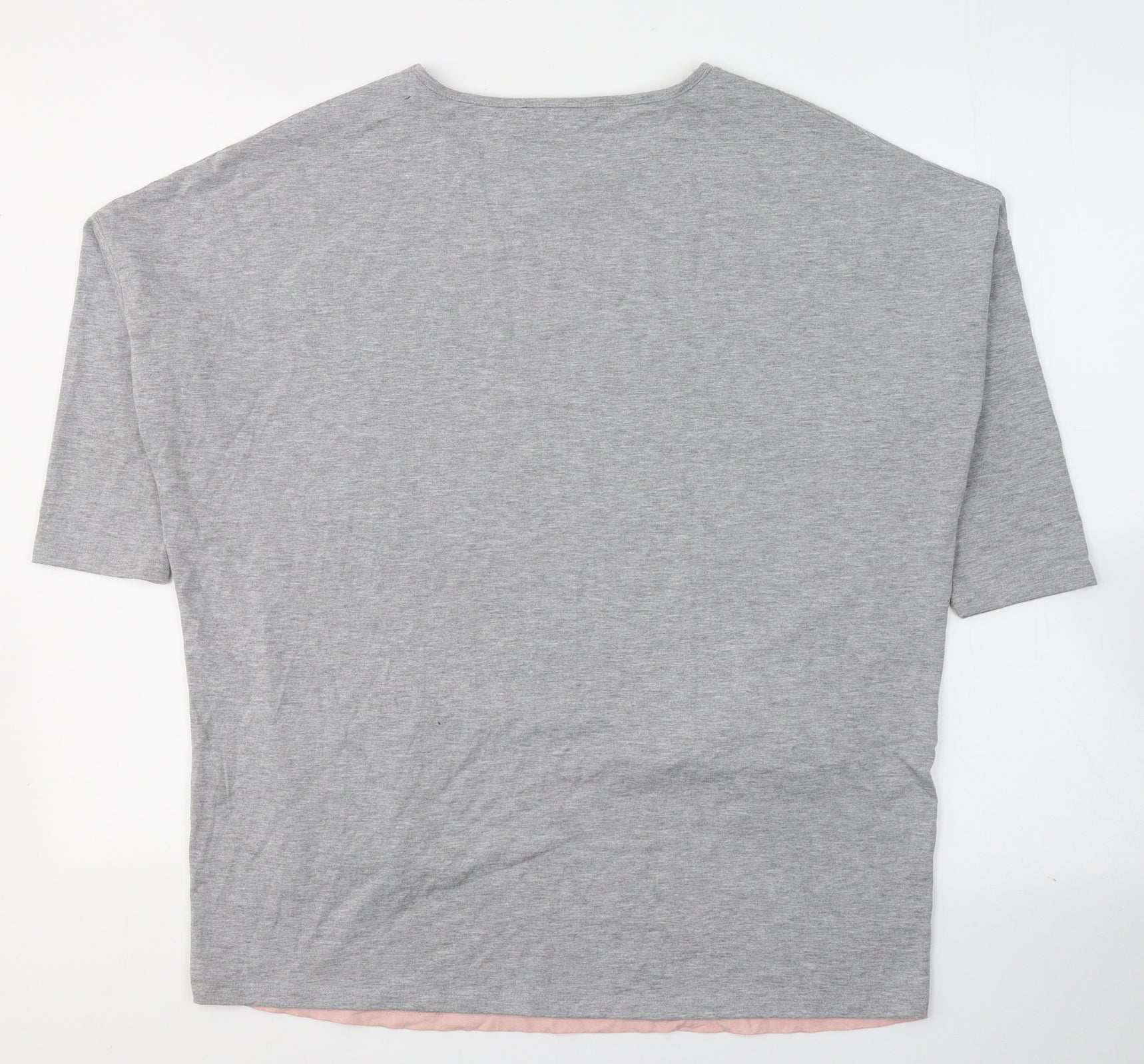 Gallery Womens Grey Colourblock Polyester Blouse Size M Round Neck
