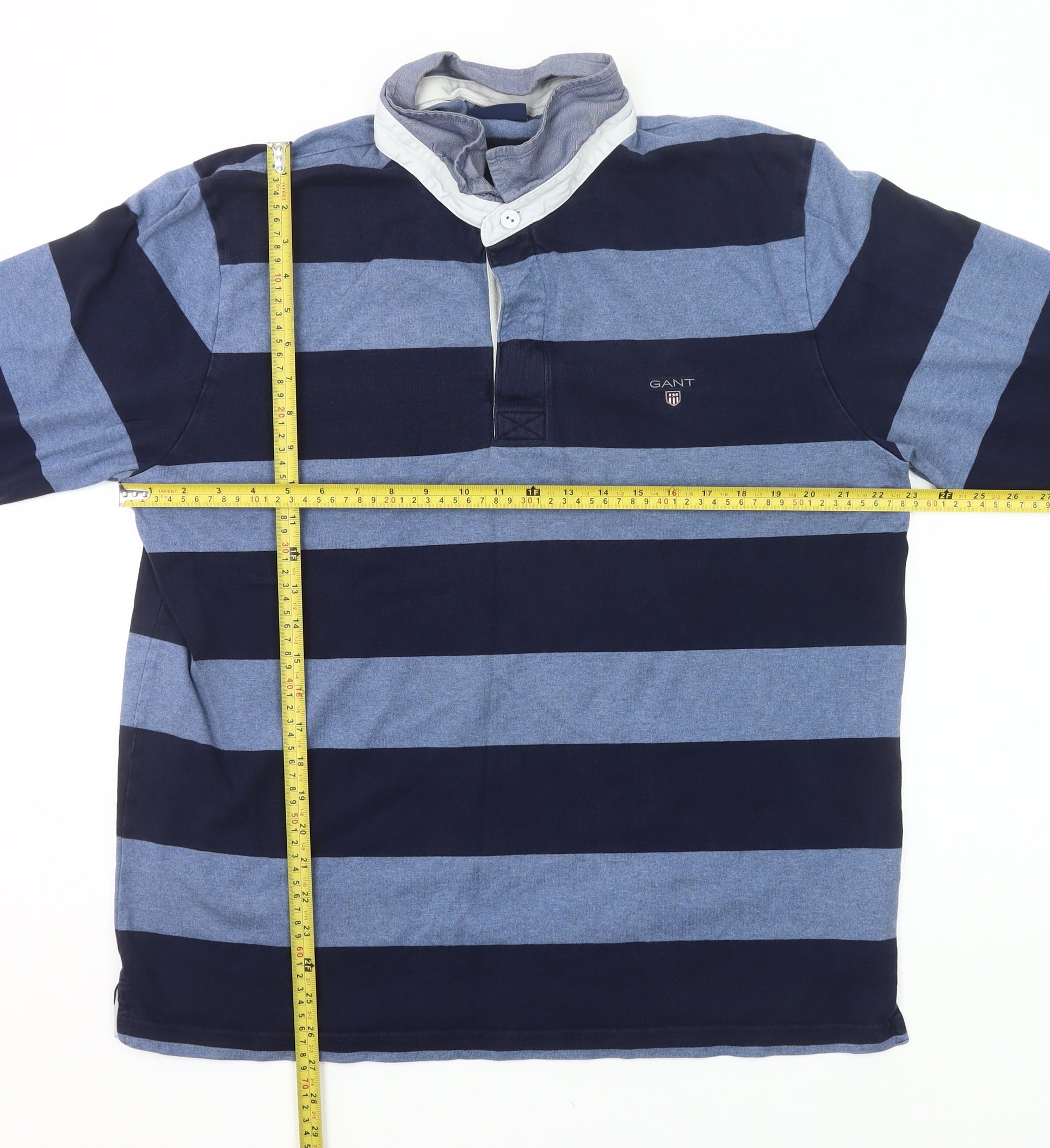 Gant Men’s Blue Striped 2XL Long Sleeve Cotton Polo Rugby Shirt