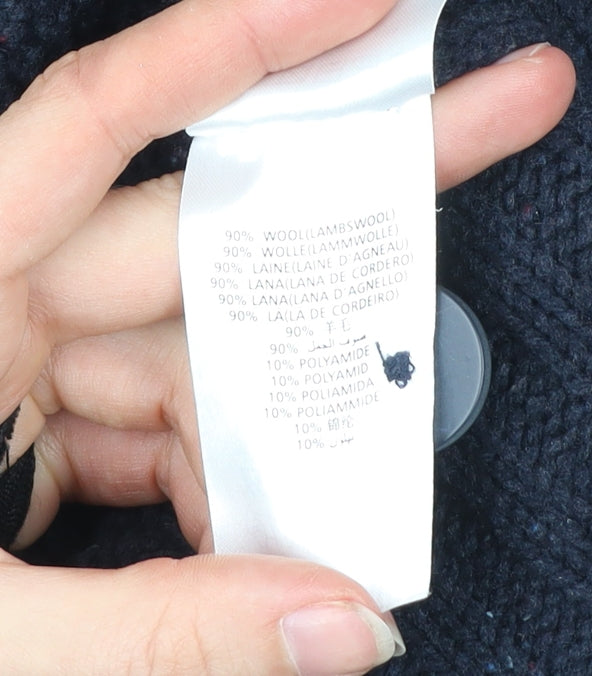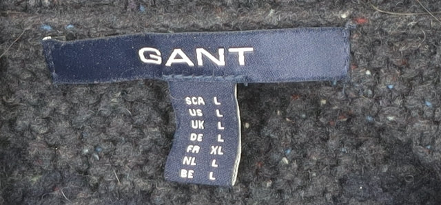 Gant Men’s Blue Wool Blend Cardigan L Collared Geometric Knit