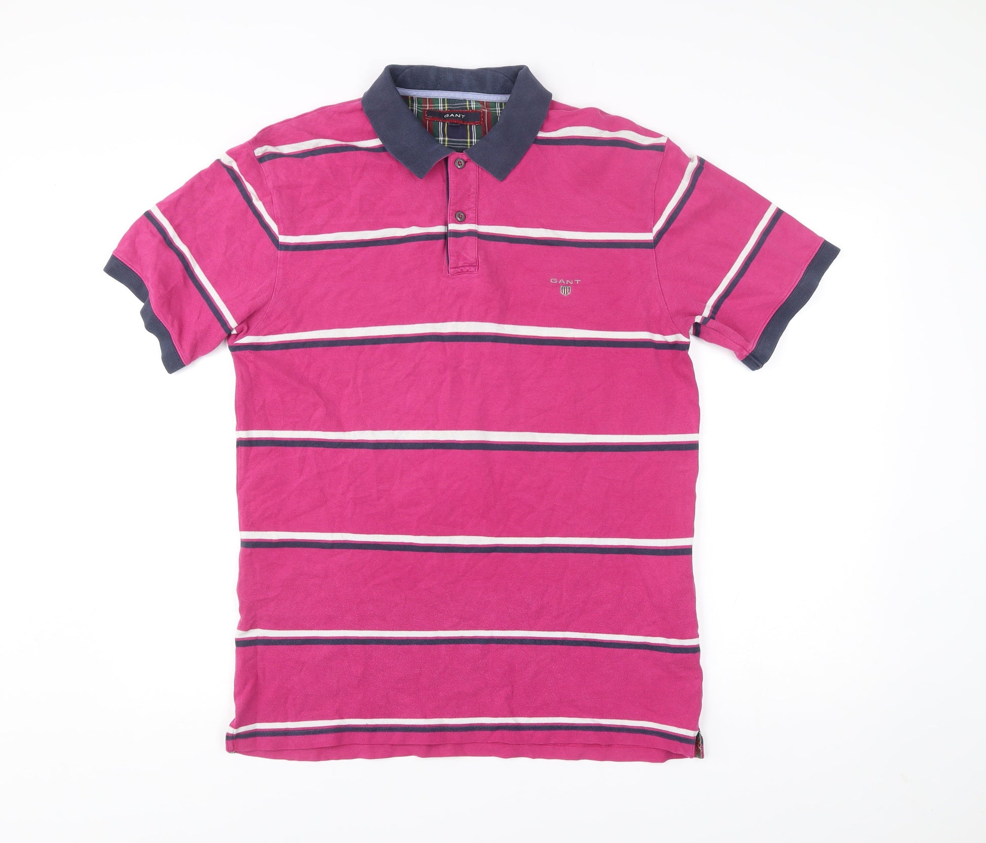 Gant Men’s Pink Striped Polo Shirt Size L Cotton Stretch