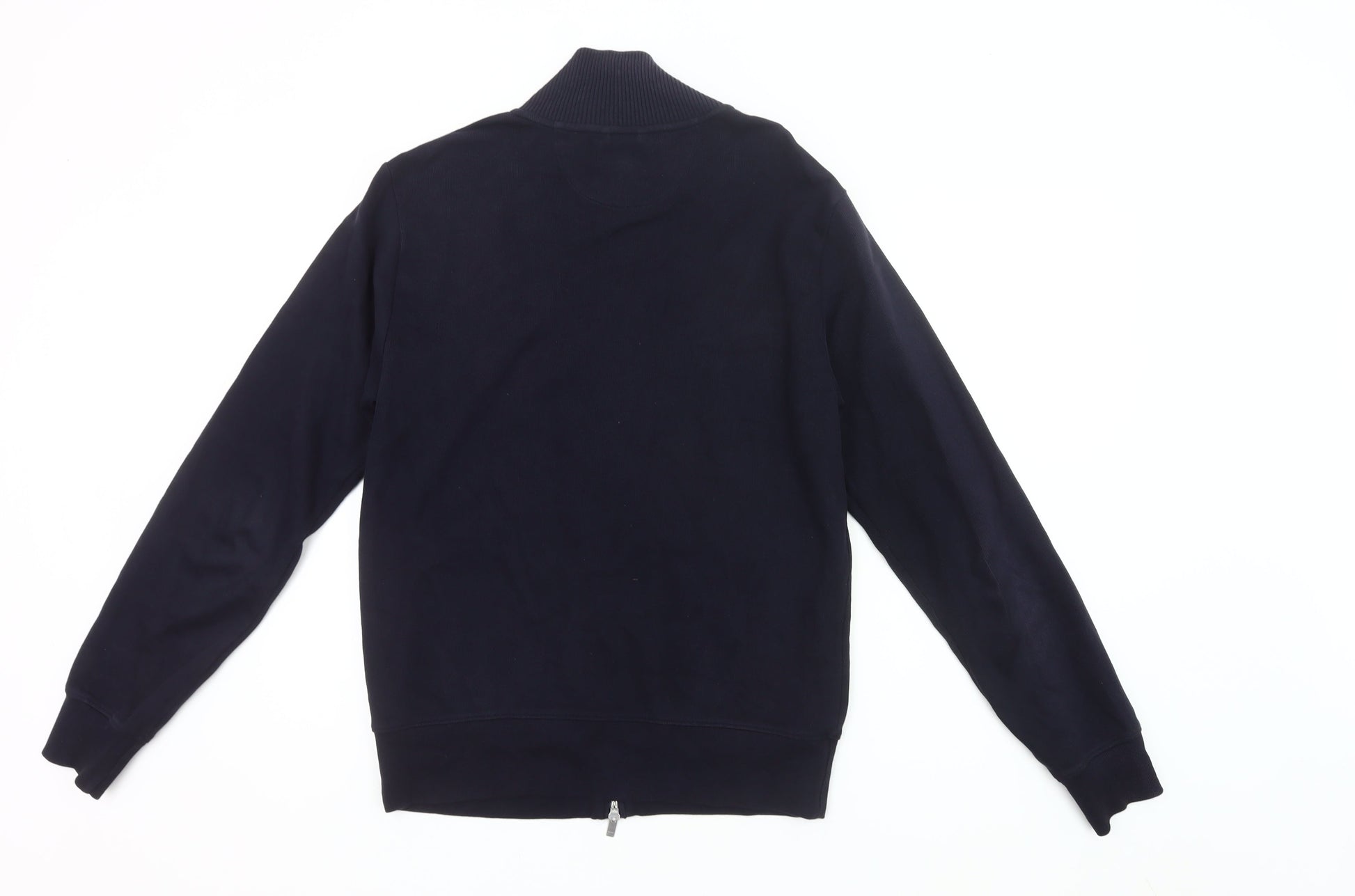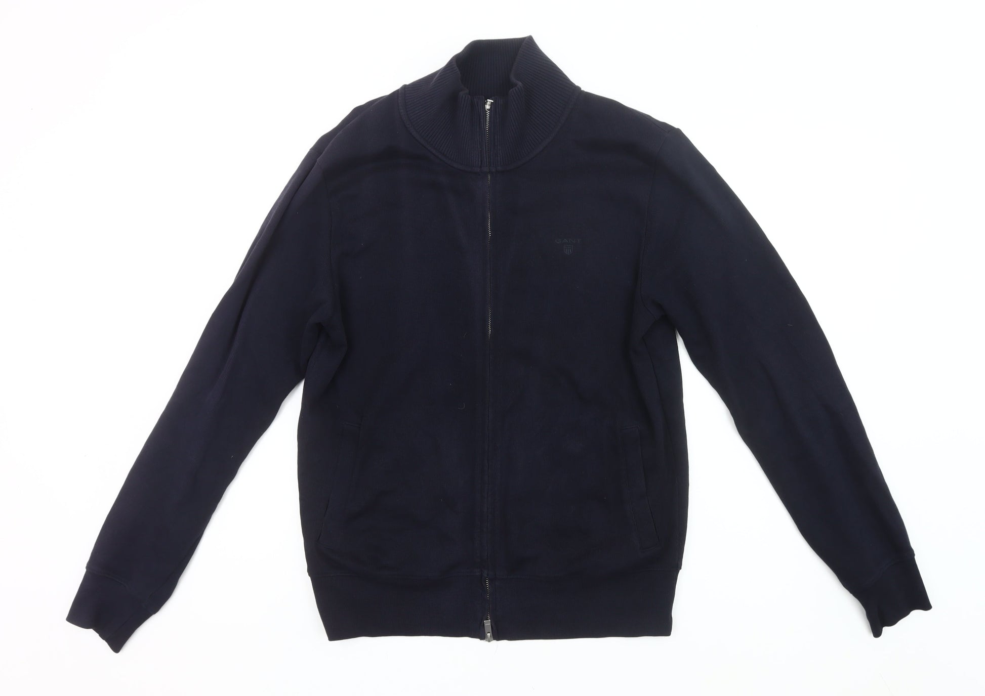 Gant Mens Blue Full Zip High Neck Cotton Jumper Size M