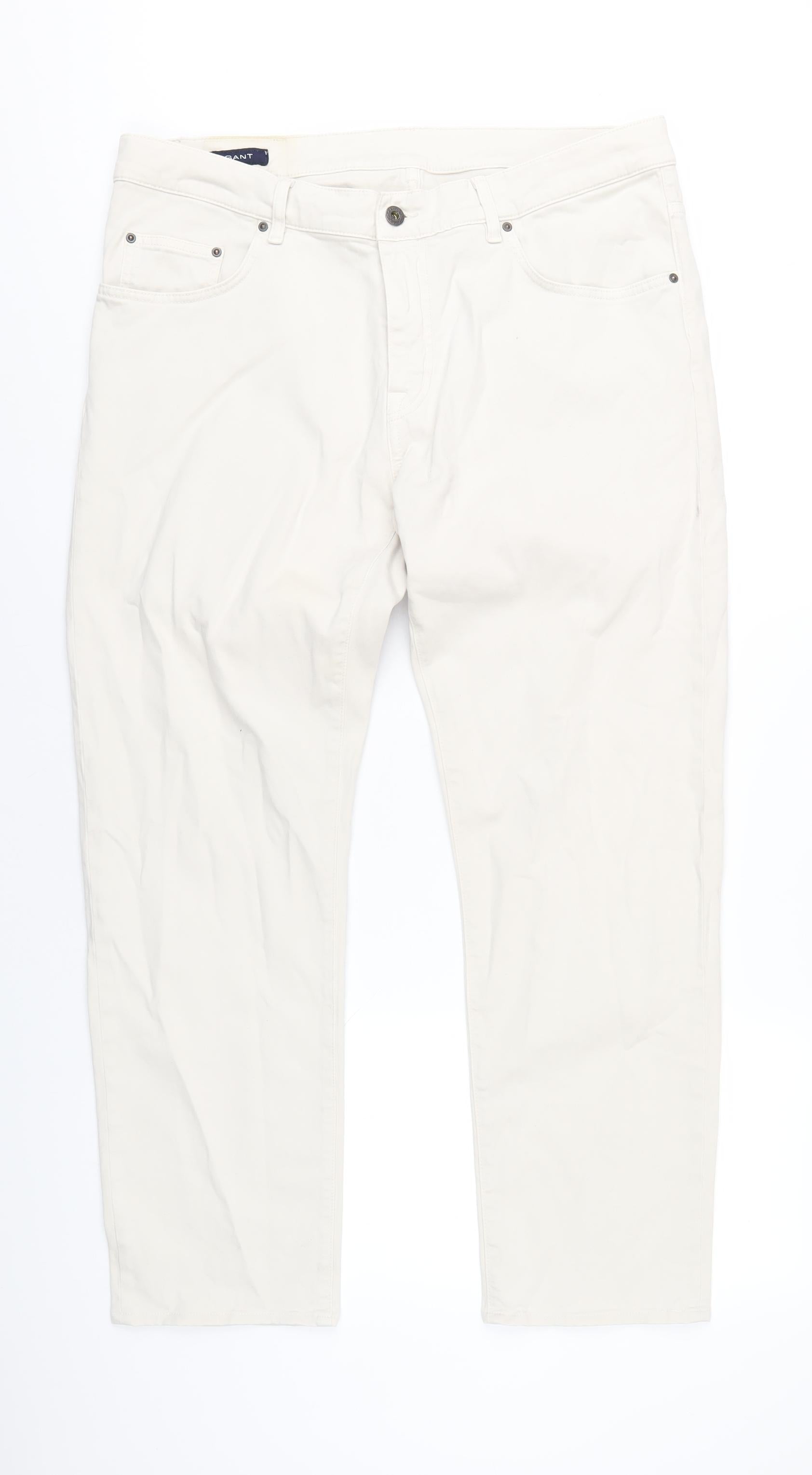 GANT Mens Ivory Cotton Tapered Jeans Size 38 in L32 in Regular Zip