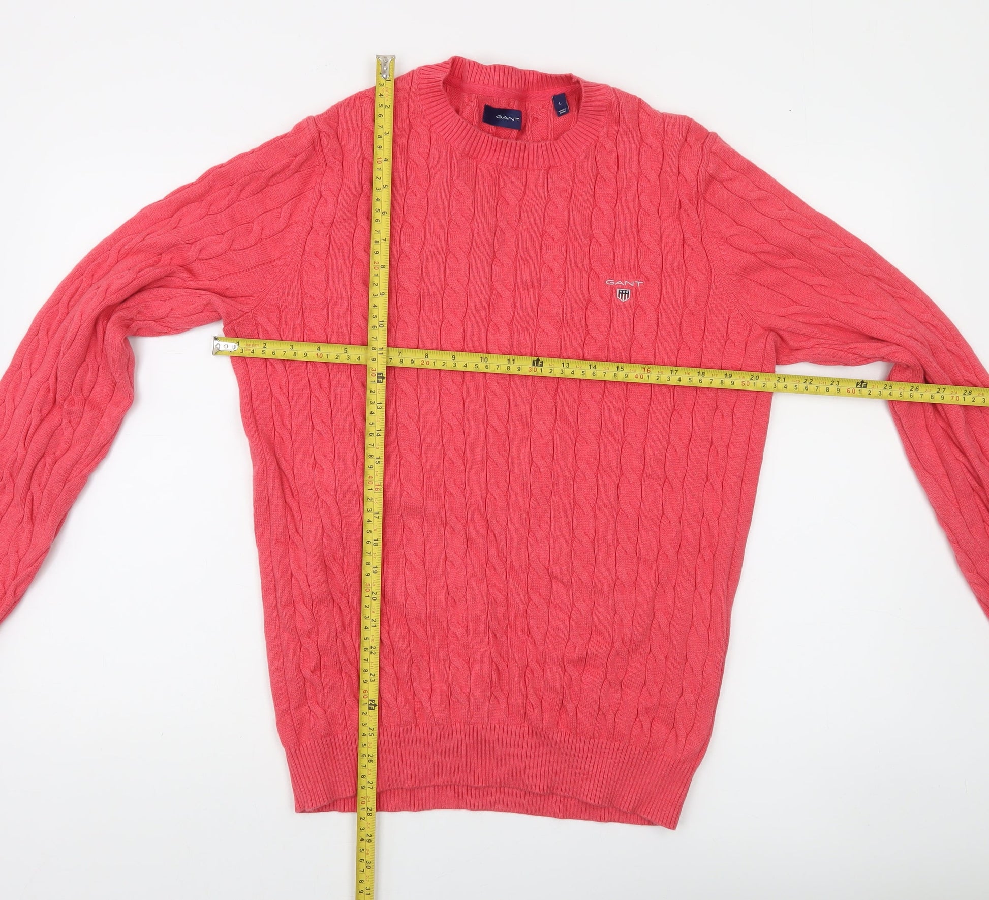 GANT Men's Pink Cable Knit Cotton Crew Neck Jumper Size L