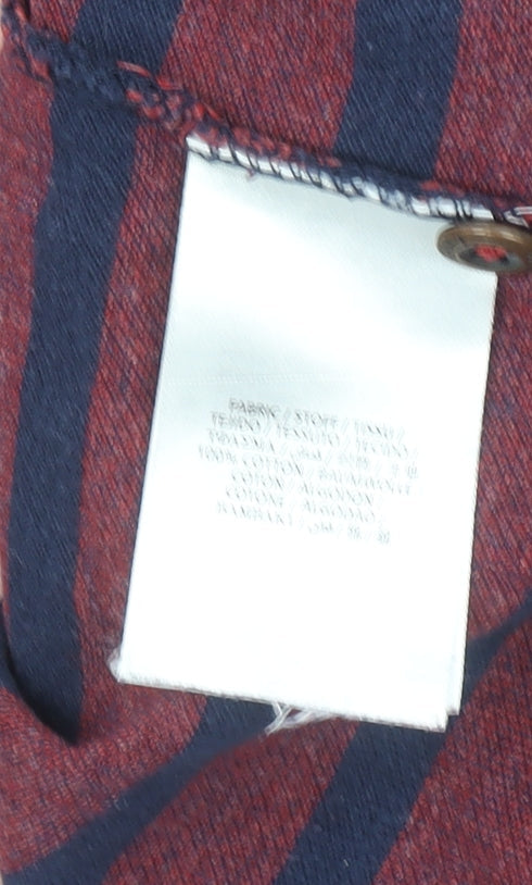GANT Men's Red and Navy Striped 2XL Cotton Polo Shirt