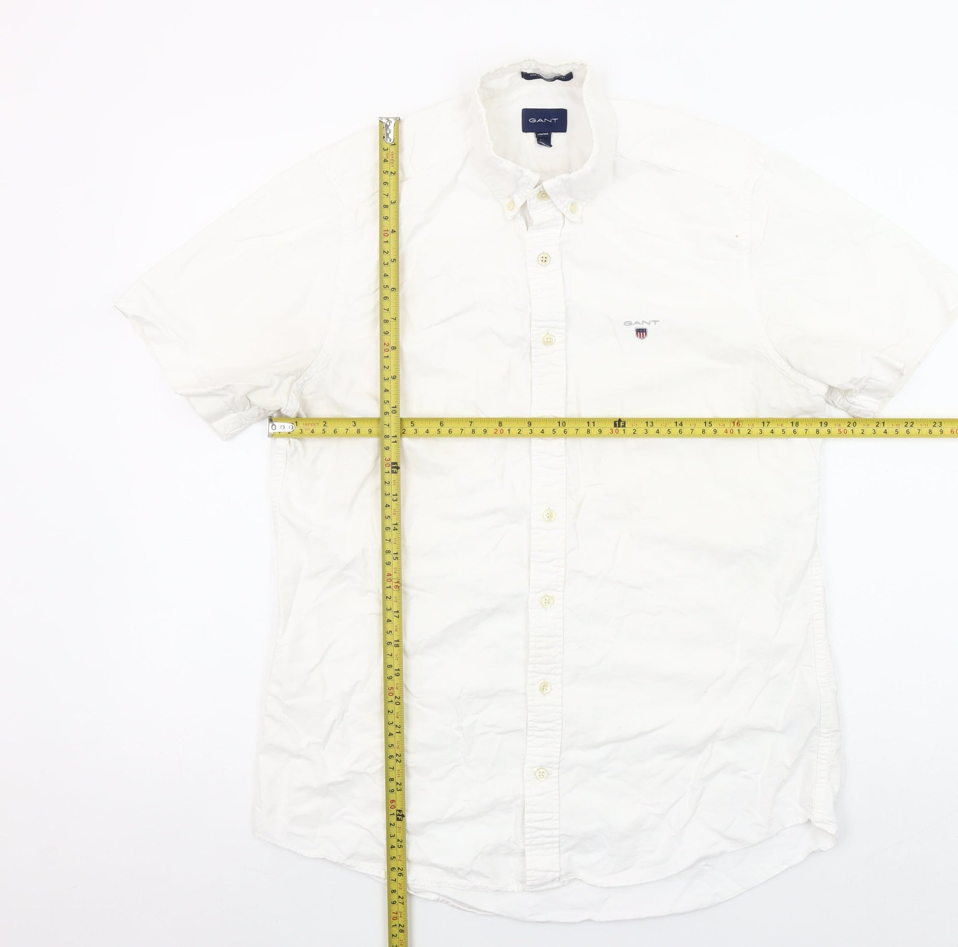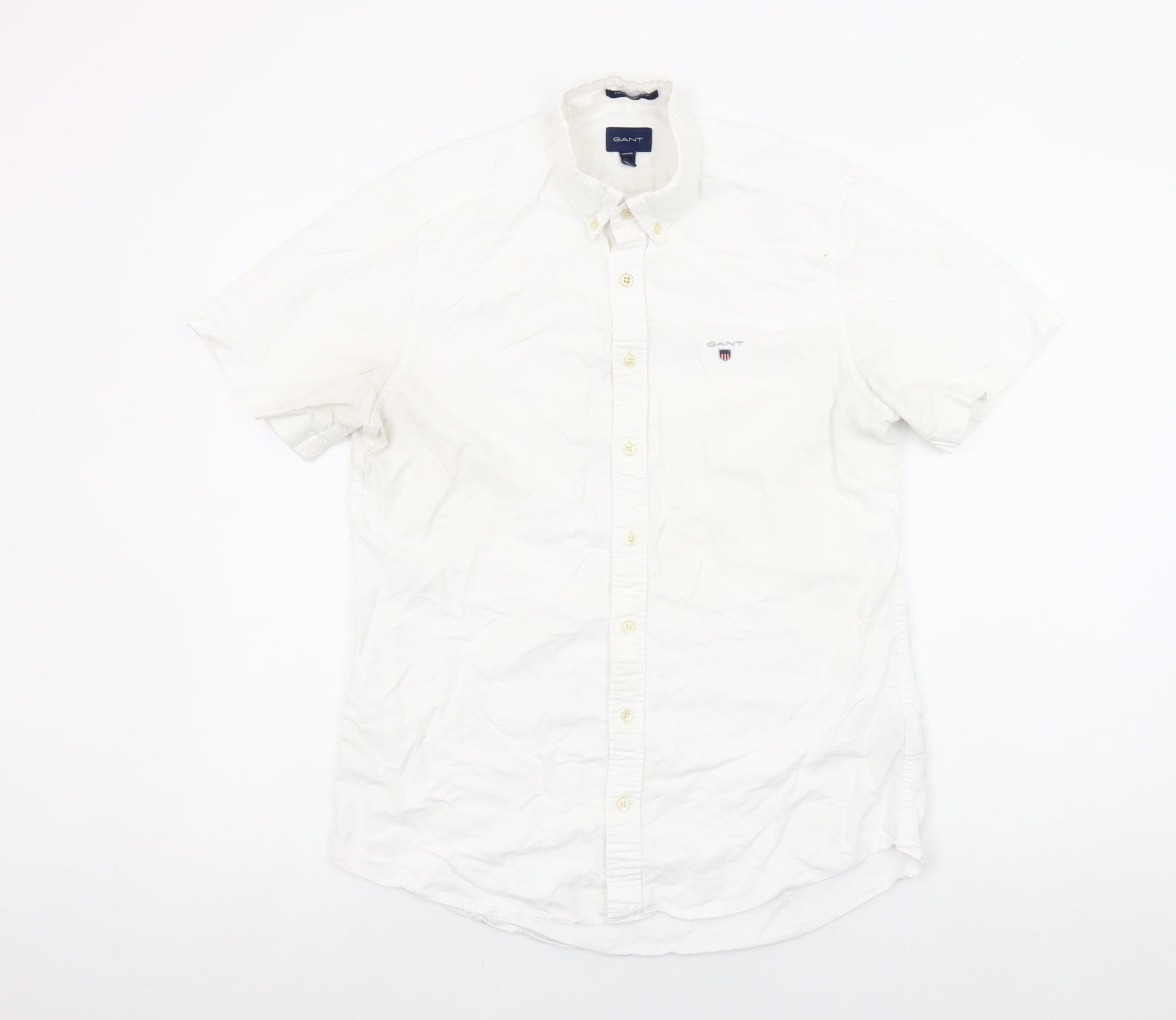 GANT Mens White Cotton Short Sleeve Button-Up Shirt M 39/40 Classic Fit