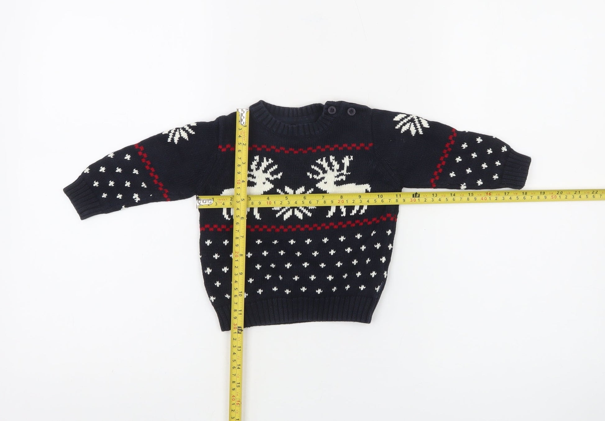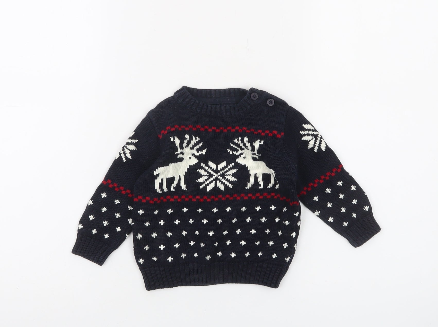 Gant Unisex Baby Navy Blue Reindeer Knit Jumper 3-6 Months Christmas Pullover