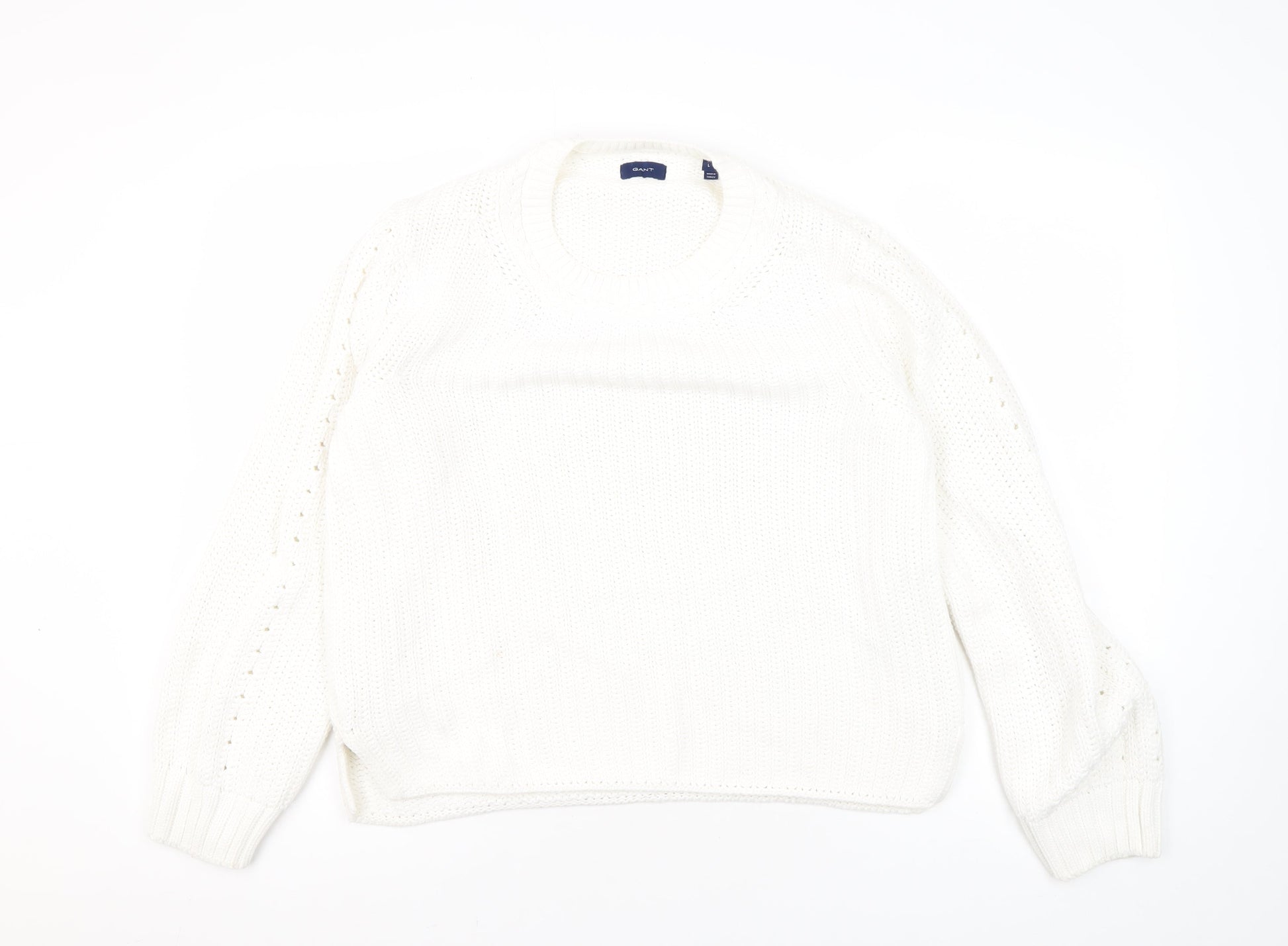 GANT Women’s White Chunky-Knit Cotton Pullover - Large