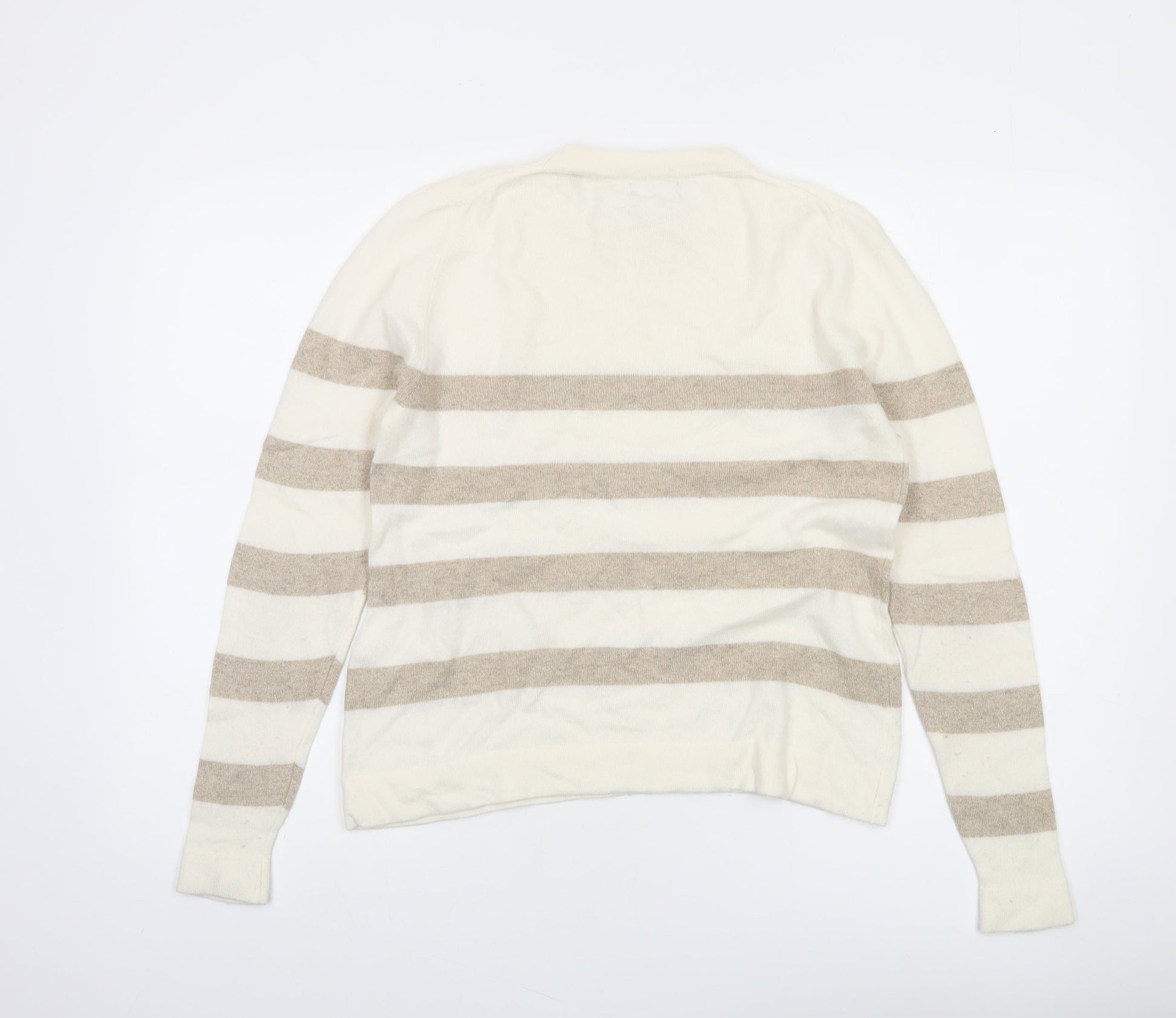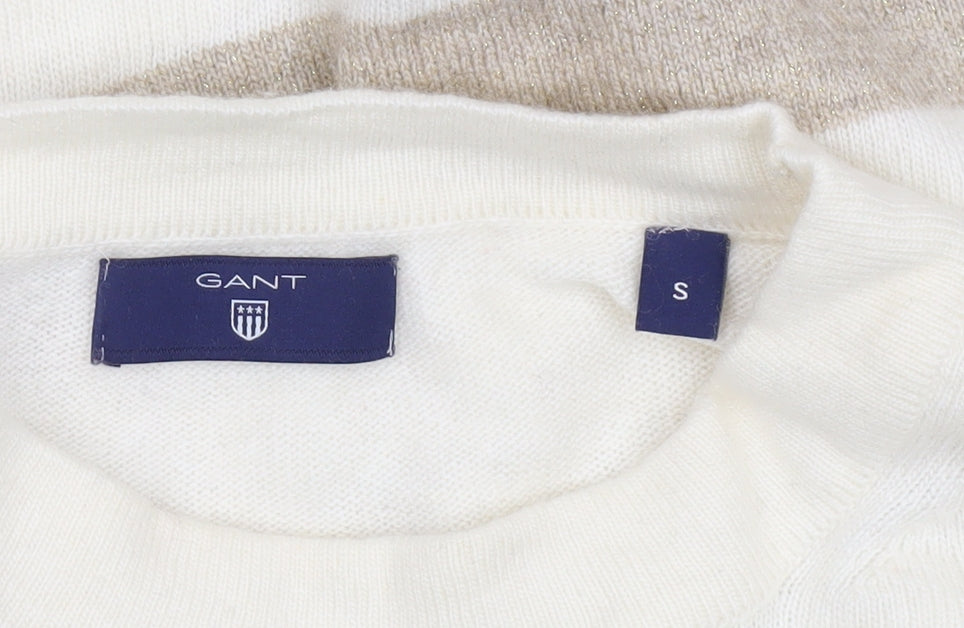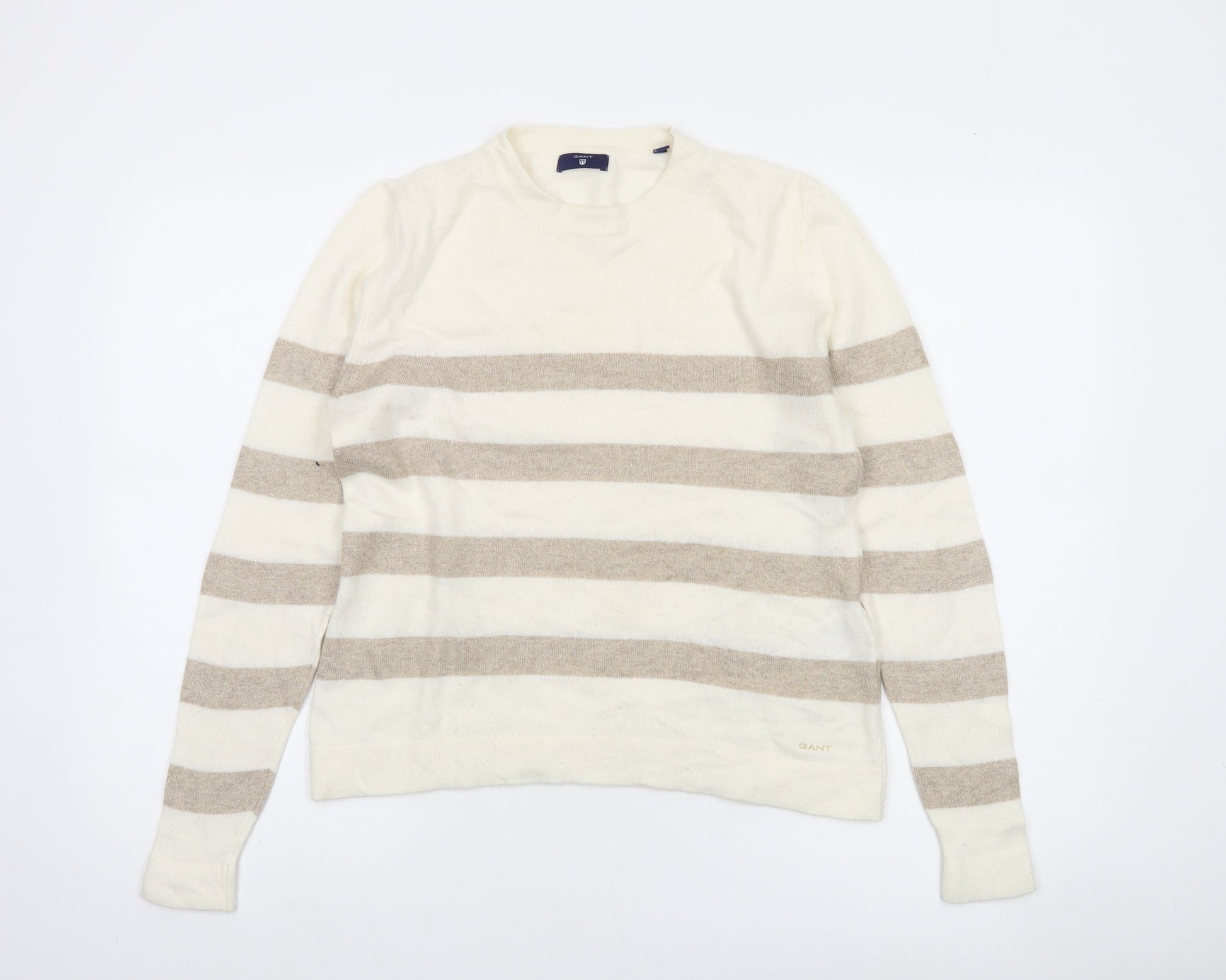 GANT Women's Beige Striped Crew Neck Wool Cashmere Jumper Size S