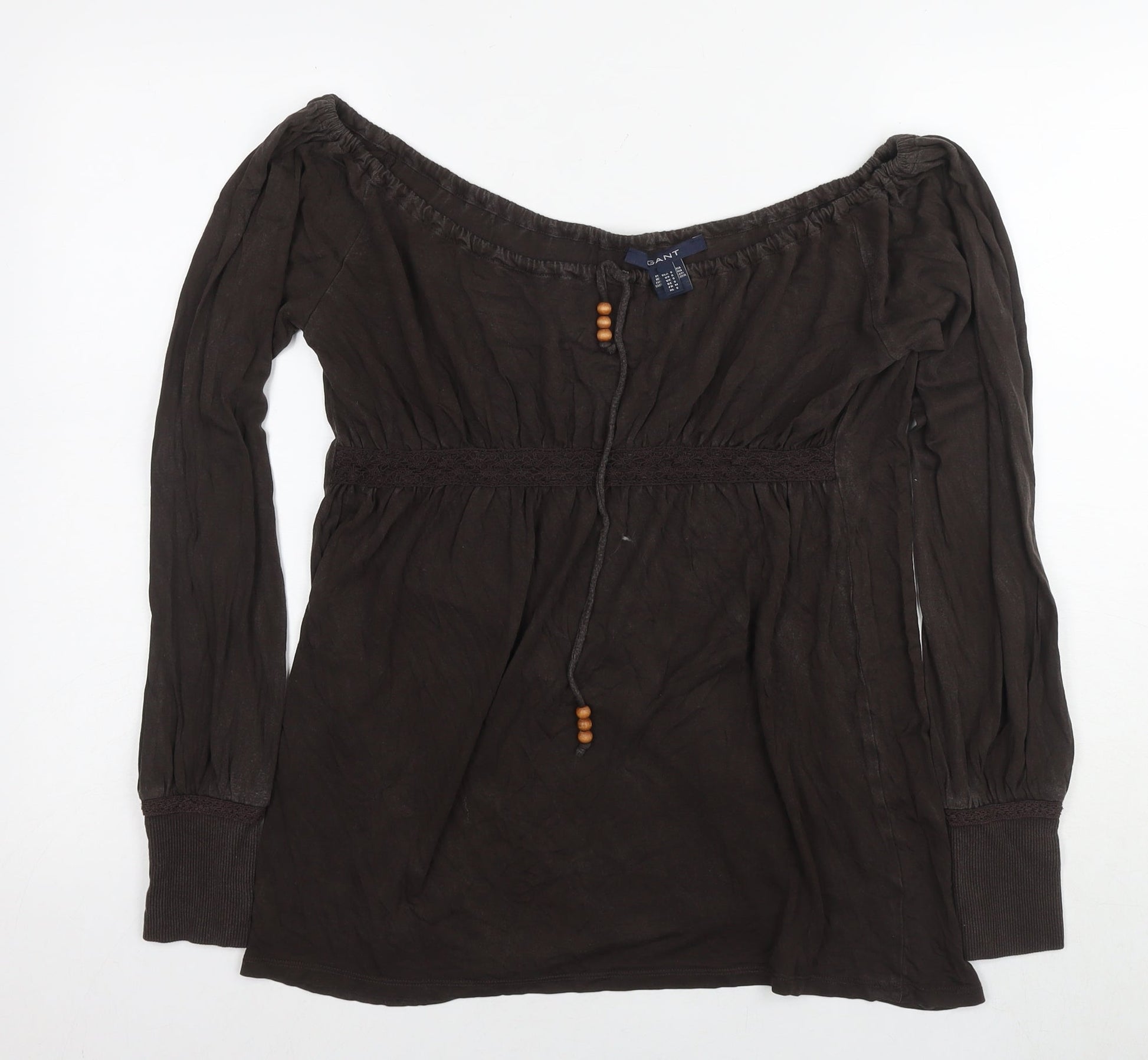 GANT Womens Brown Polyester Basic Blouse Size S Off the Shoulder