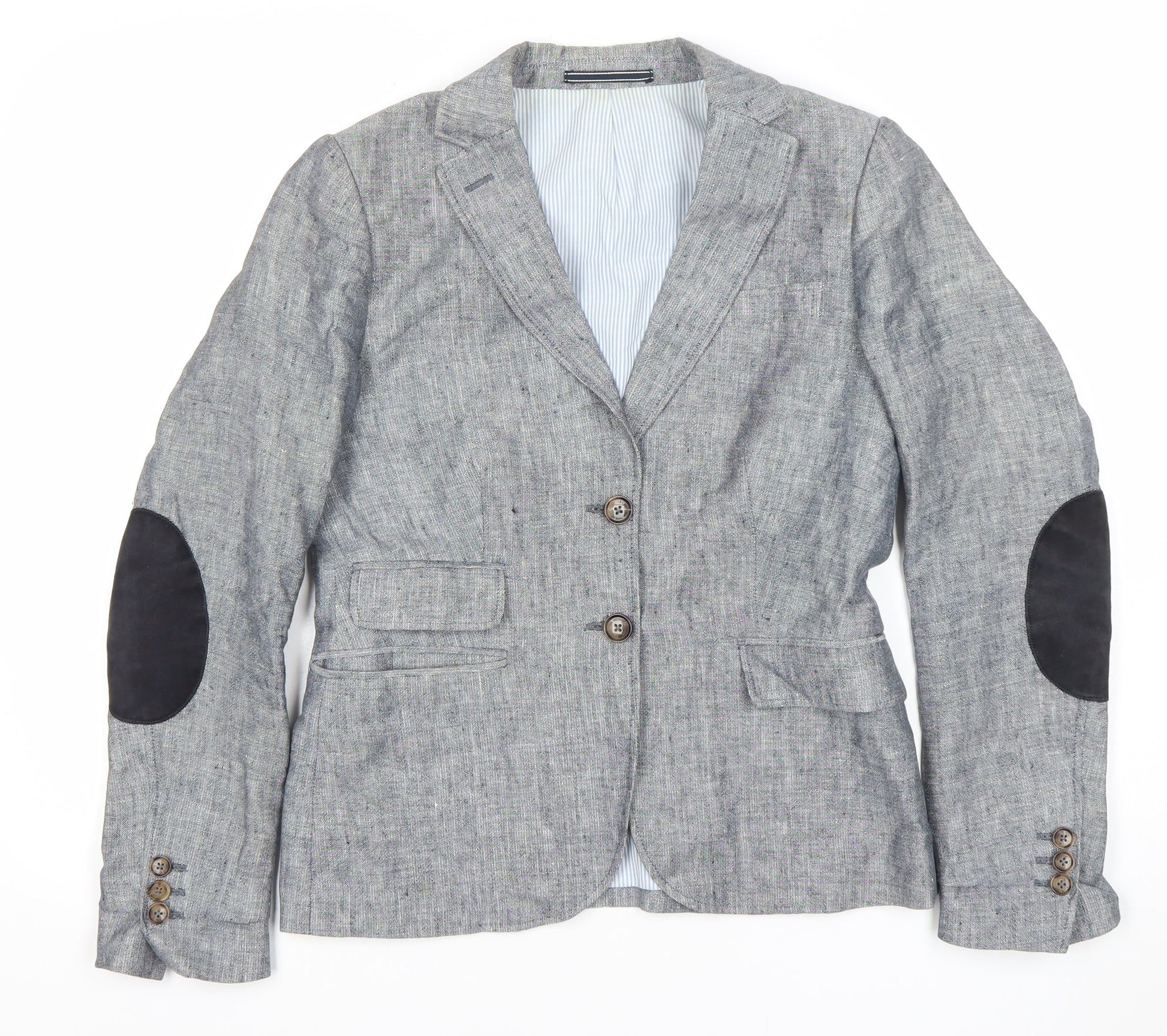 Gant Womens Grey Linen Blend Blazer UK 10 Regular Fit Two Button Jacket