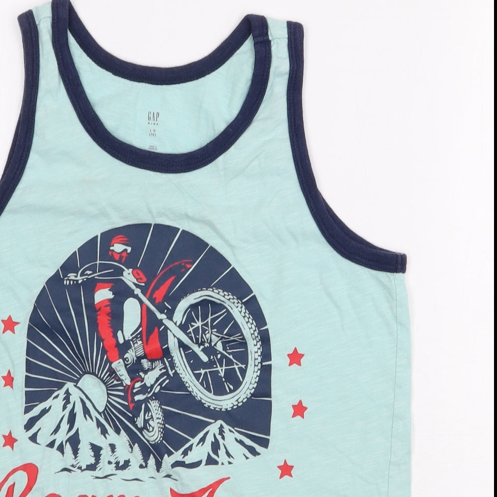 Gap Boys Blue 100% Cotton Basic Tank Size 10 Years Scoop Neck Pullover - Motorbike